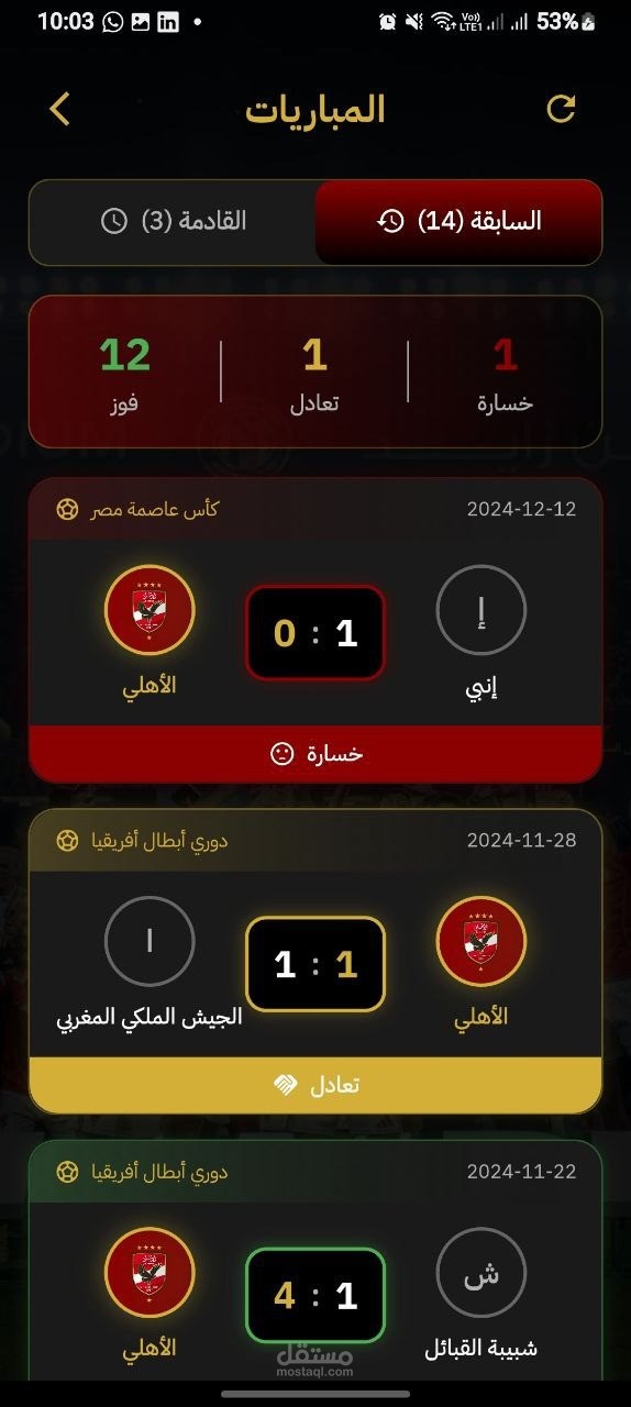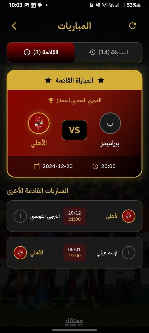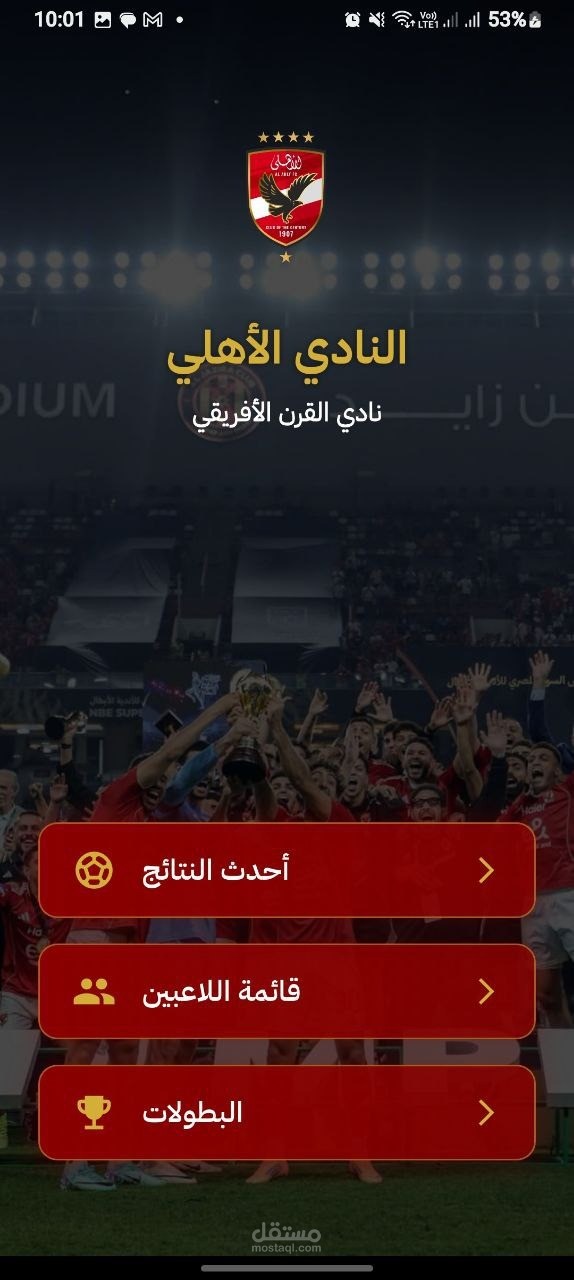 تطبيق جوال شامل لنادي الأهلي الرياضي. يتضمن التطبيق جداول المباريات، والنتائج المباشرة، ومعلومات الفريق، وملفات تعريف اللاعبين، وآخر الأخبار، وأدوات تفاعل المشجعين. يوفر التطبيق تجربة سلسة للمشجعين للبقاء على اتصال مع فريقهم المفضل، والوصول إلى التحديثات الفورية، والتفاعل مع مجتمع الأهلي.