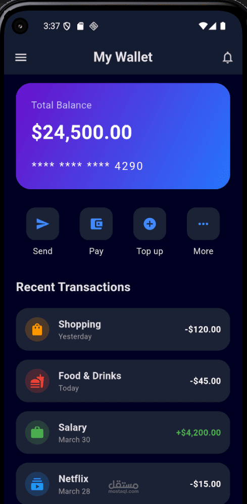 A modern and sleek Digital Wallet application built with Flutter. This project focuses on high-quality UI/UX and clean code architecture.