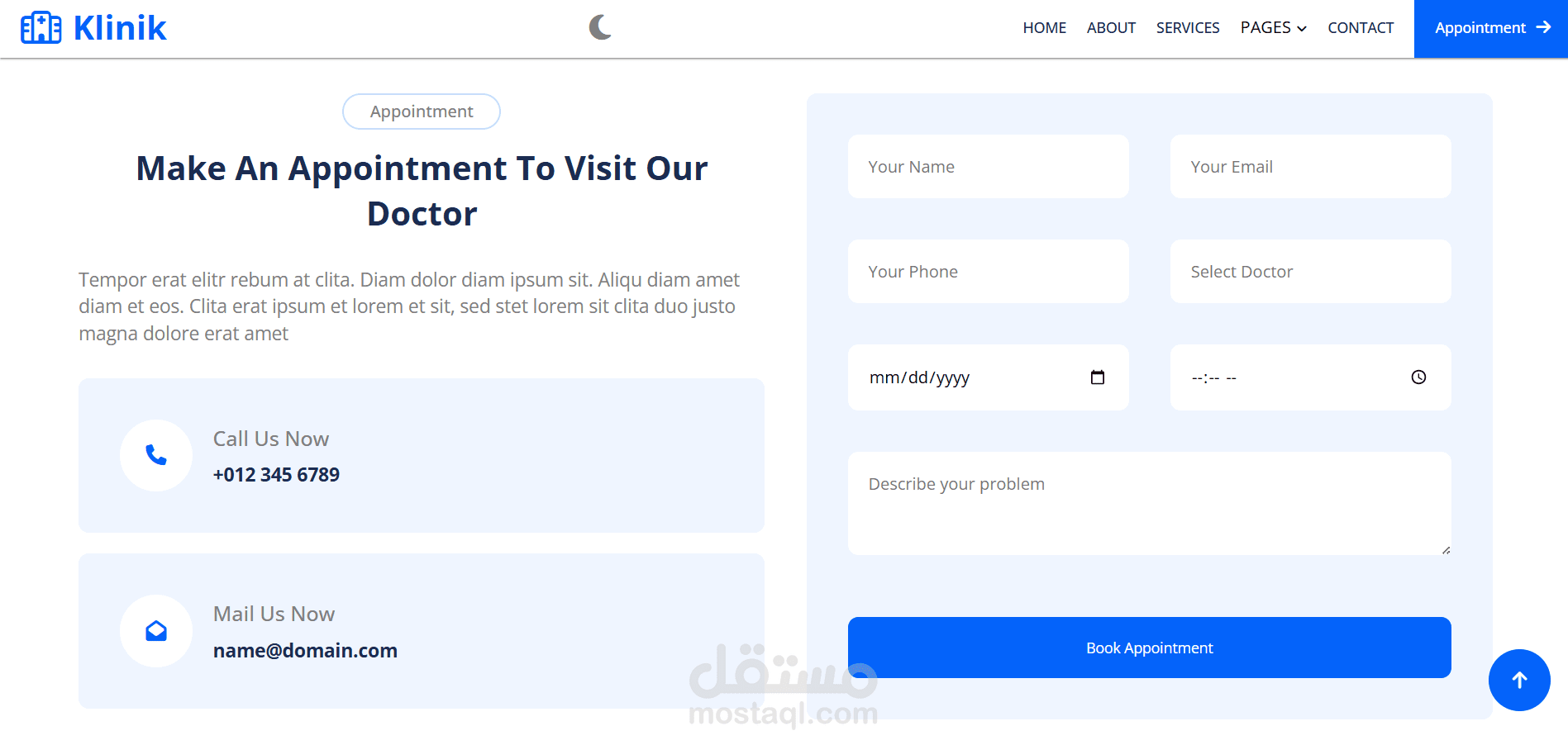 قمت بتصميم وتطوير موقع ويب بسيط لمستشفى يهدف إلى تقديم المعلومات الطبية والخدمات بشكل واضح وسهل للمستخدمين.