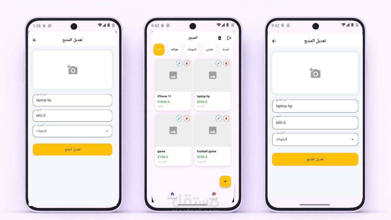 * نظام الإدارة الشامل (CRUD): برمجة لوحة تحكم تسمح بإضافة منتج جديد، تعديل بيانات المنتج (الاسم، السعر، التصنيف، الصورة)، أو حذفه.