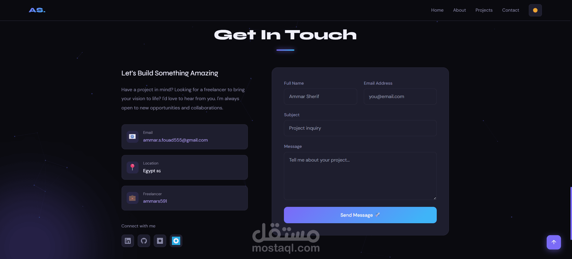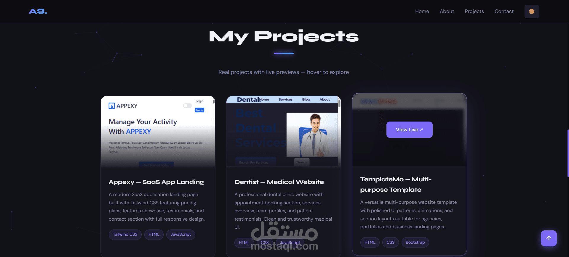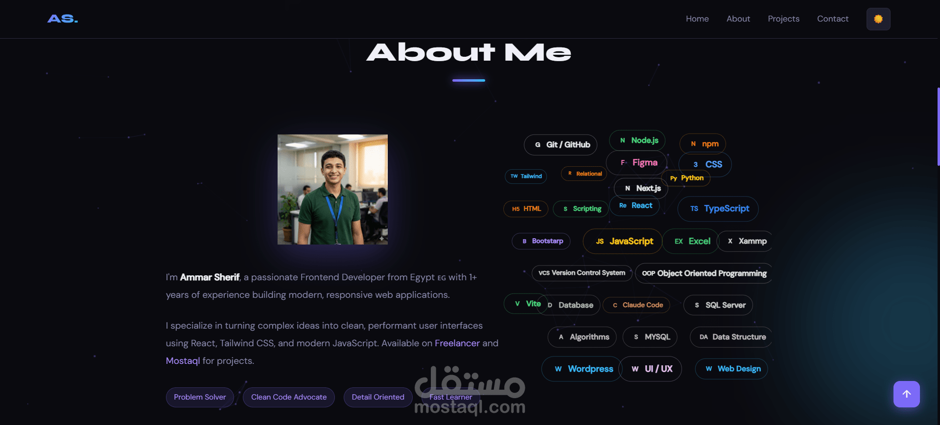 بورتفوليو احترافي يدمج بين الفن والتكنولوجيا، تم بناؤه باستخدام React و TypeScript مع الاعتماد على تقنيات GPU-accelerated visuals لتقديم تجربة بصرية فائقة السلاسة والقوة. المشروع ليس مجرد موقع تعريفي، بل هو تجربة تفاعلية متكاملة تستعرض قدرات الواجهات الأمامية الحديثة.
