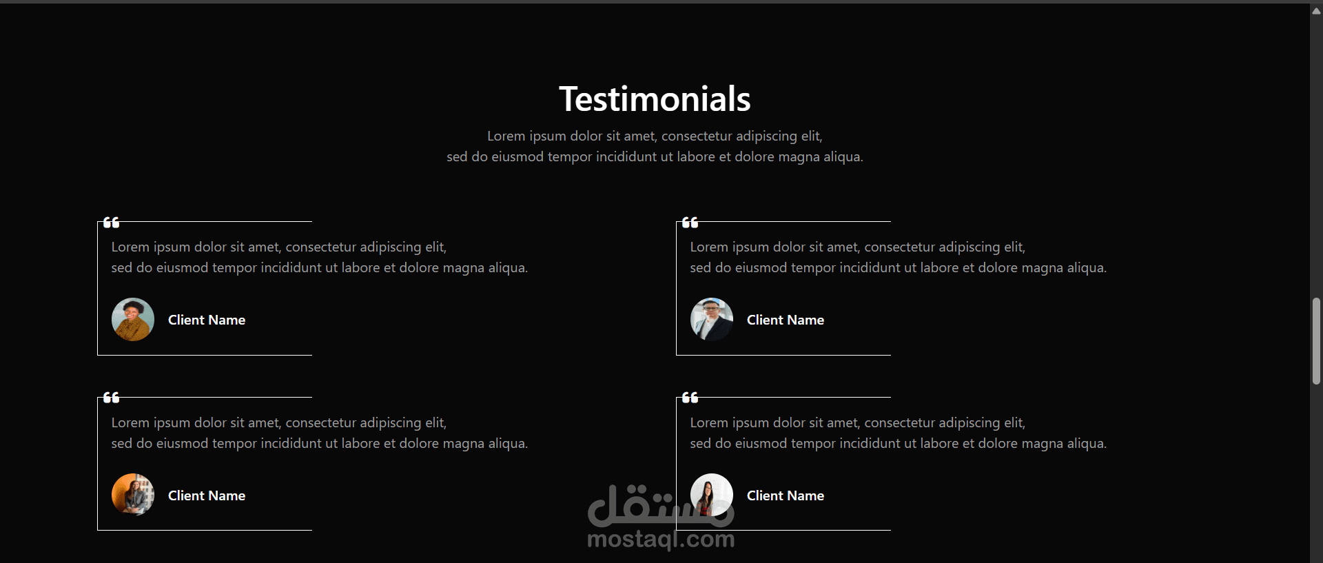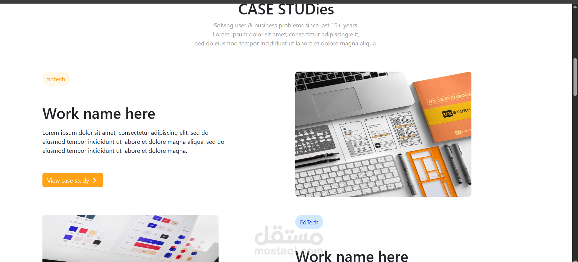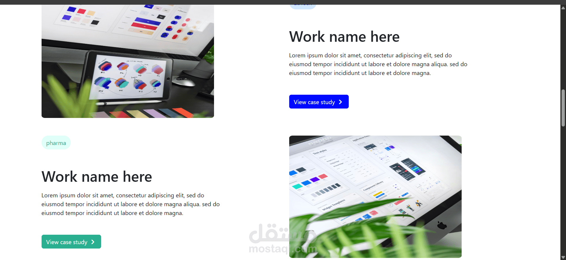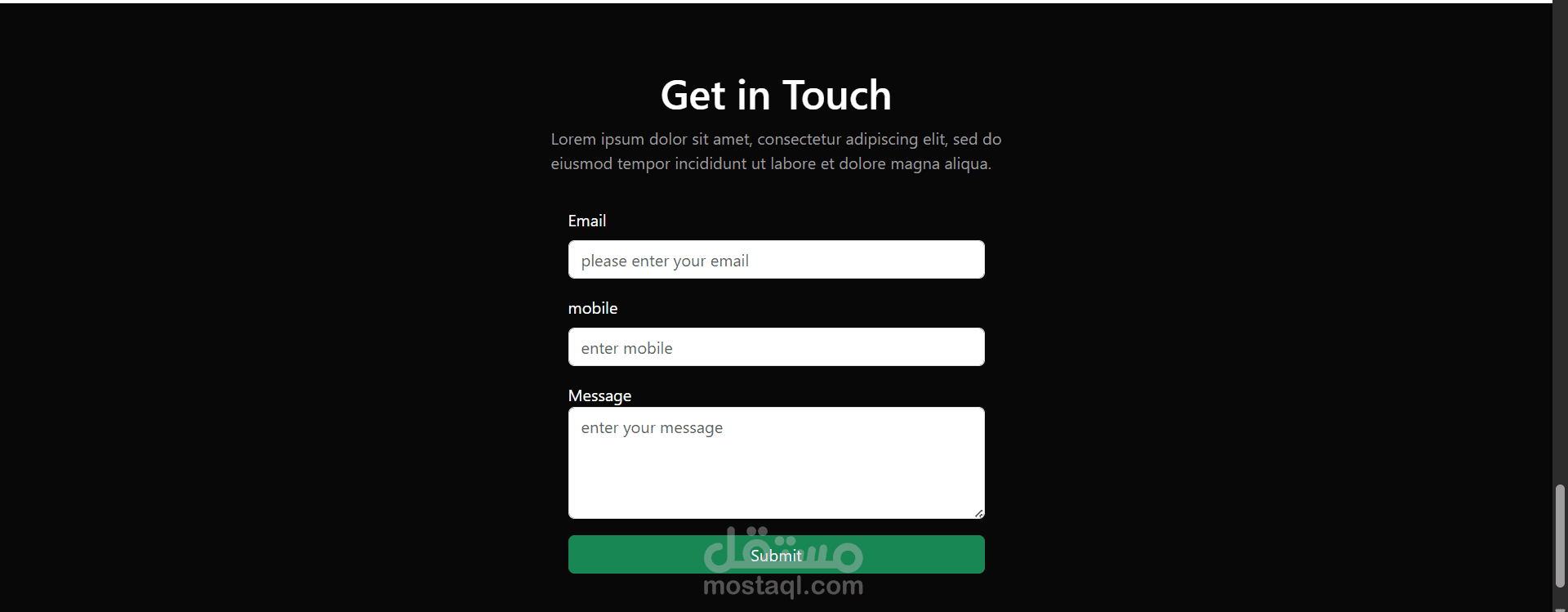 مشروع بورتوفليو بسيط يحتوي على عدد من الصفحات التي تظهر اعمال سابقة يمكن وضعها مع فورم للتواصل