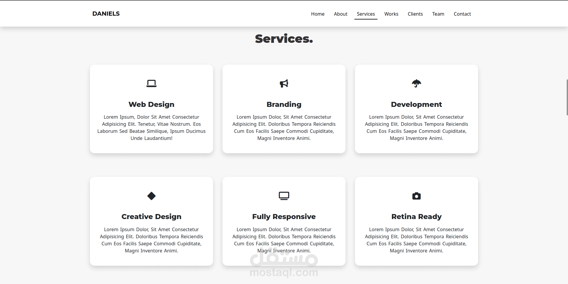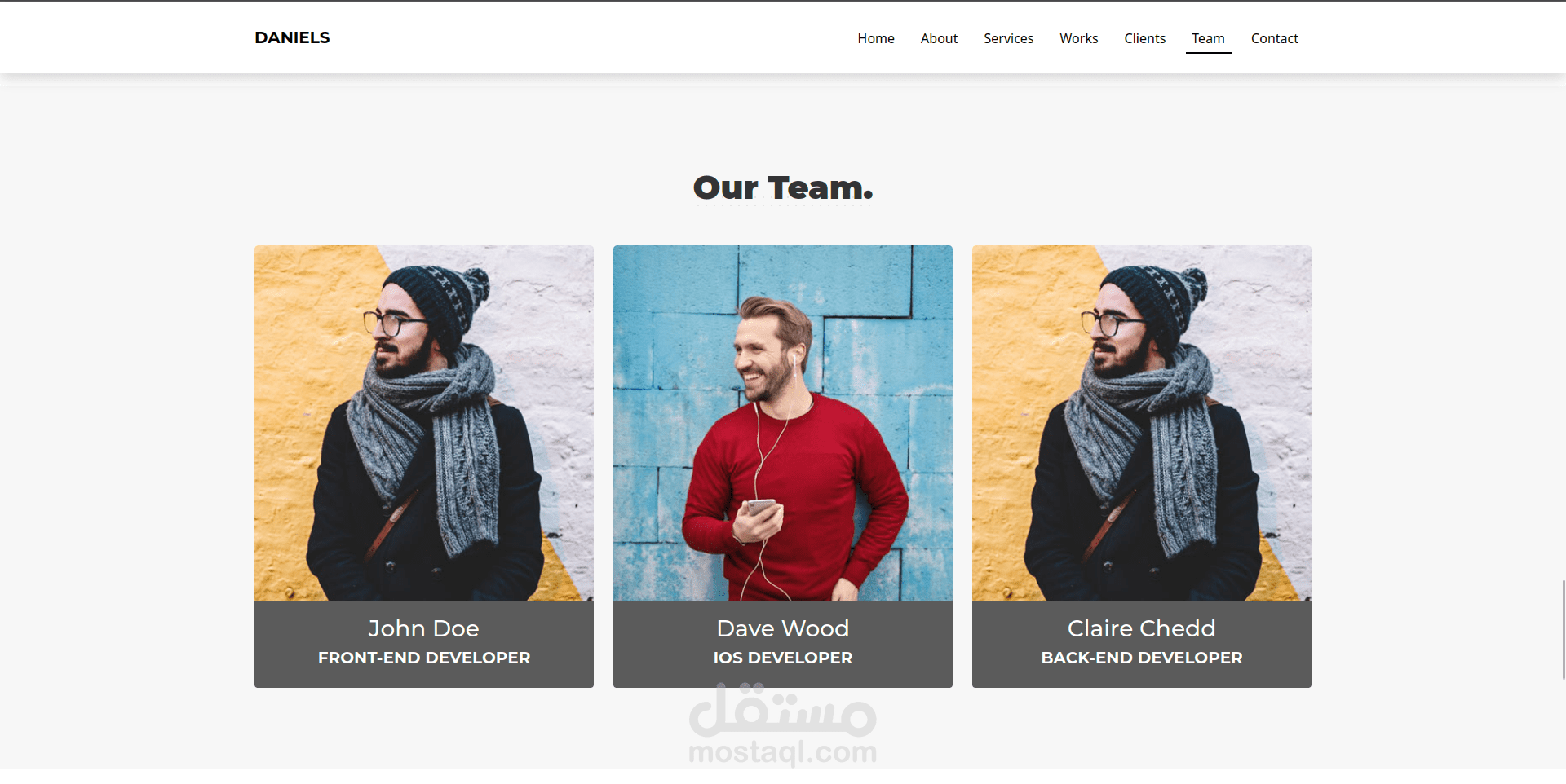 Integrated Testimonials & Team Sections: Includes a smooth-scrolling carousel for client feedback and a dedicated "Our Team" segment to showcase collaborative capabilities.