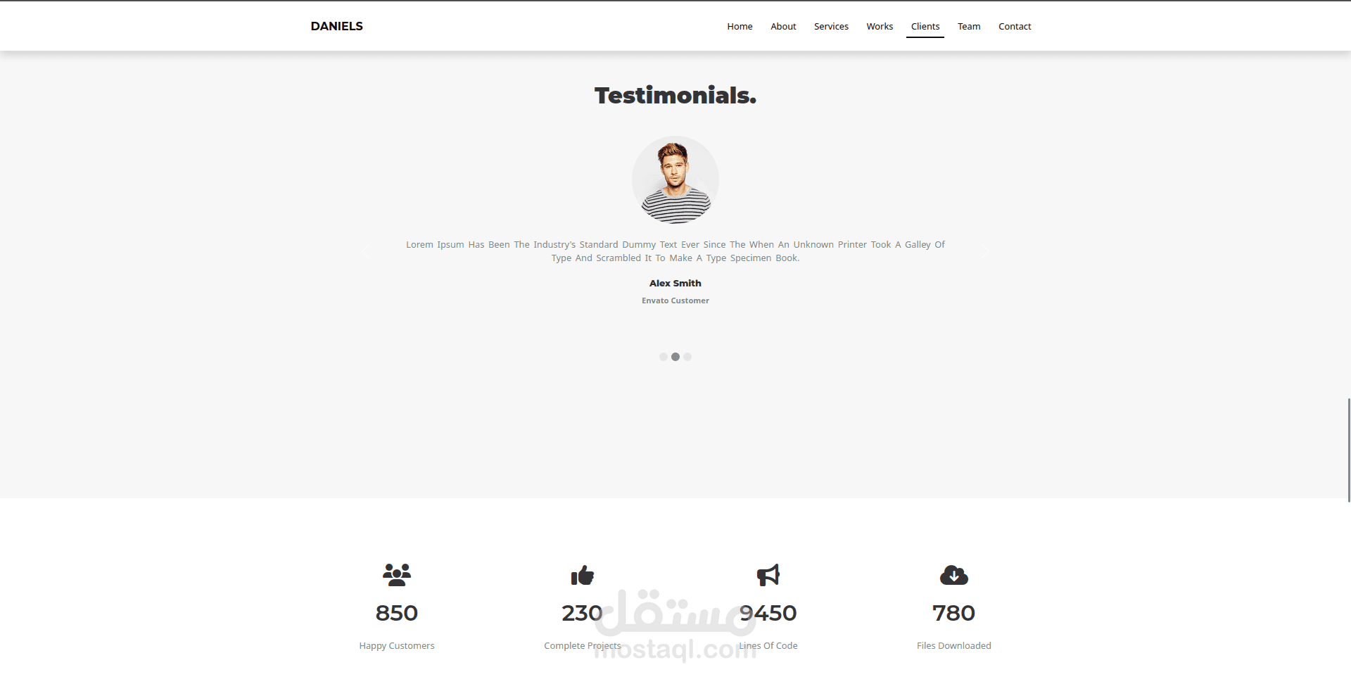 Dynamic Statistics Tracker: Includes a "Milestones" section with animated counters for metrics like "Happy Customers," "Complete Projects," and "Lines of Code," adding social proof and a sense of accomplishment.