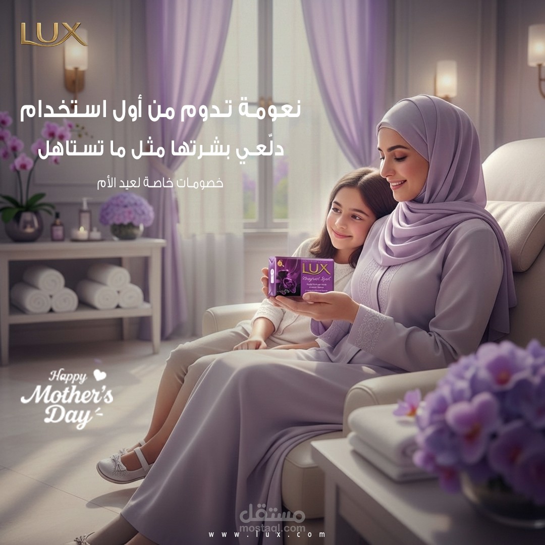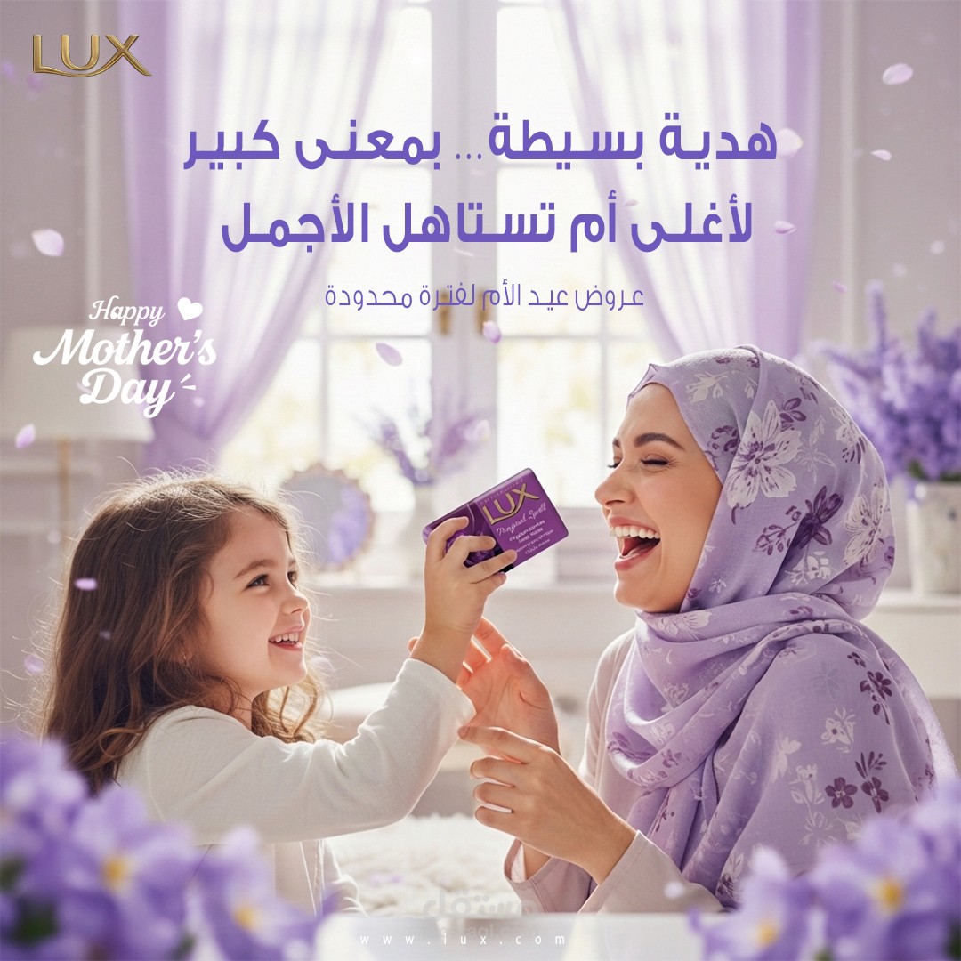 Mother’s Day themed social media design for Lux soap, focusing on elegance, softness, and the emotional value of gifting.