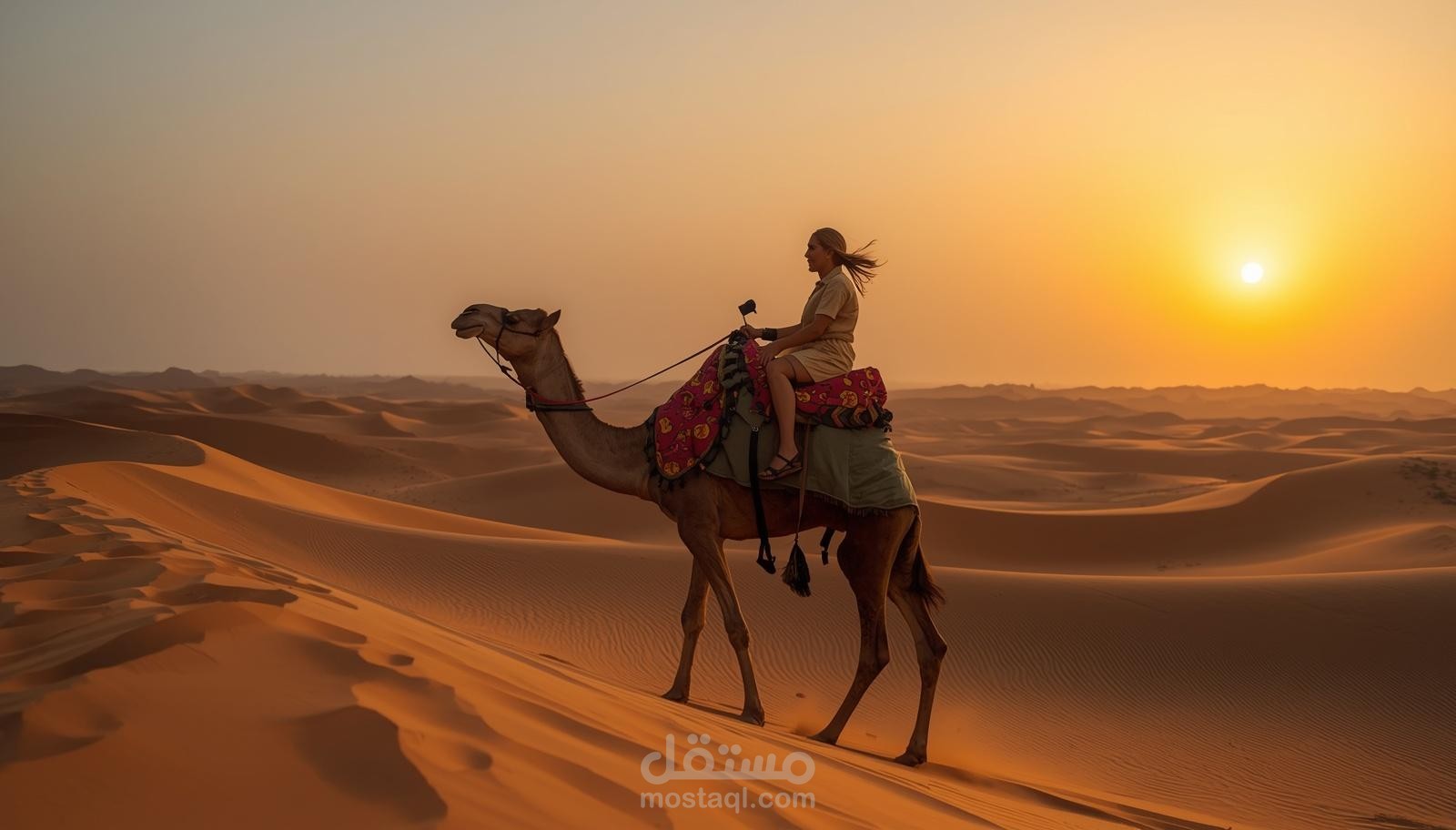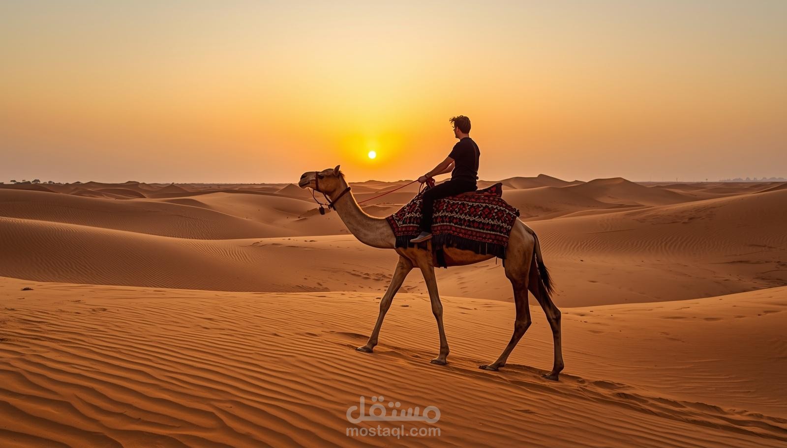 A camel ride is a guided experience where you ride a camel across the desert الرمال (sand dunes), just like ancient Bedouins did for travel. Camels are often called the “ships of the desert” because they were historically used for long journeys across الرمال.