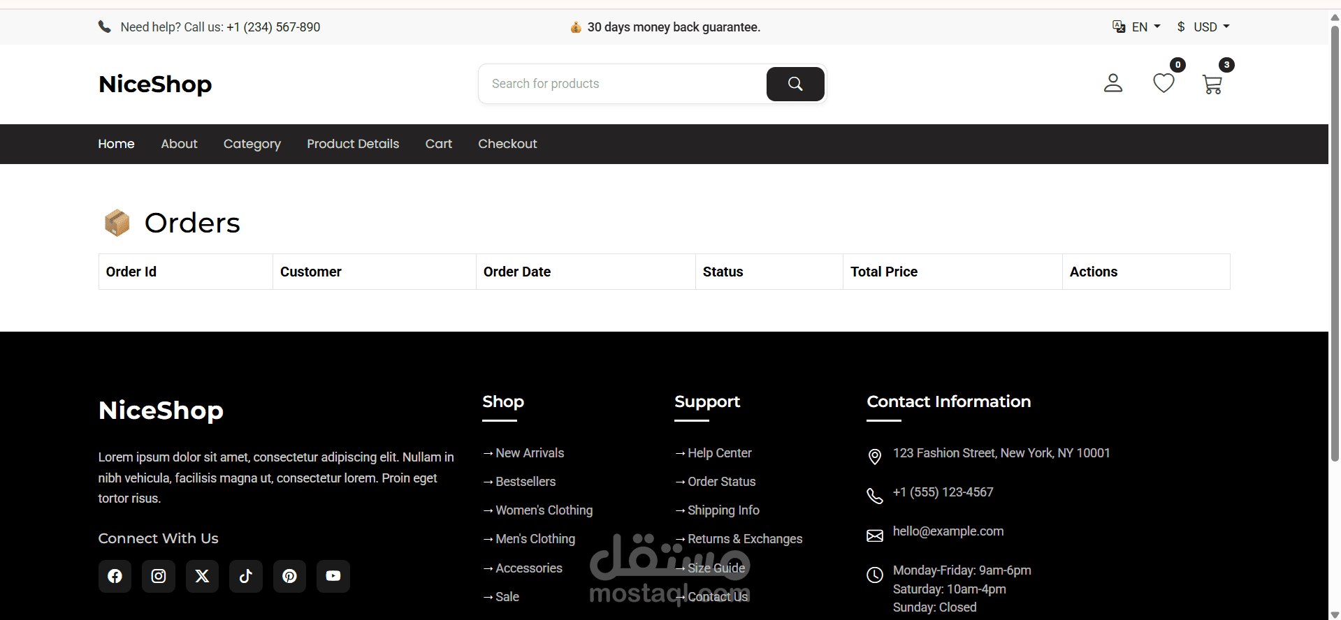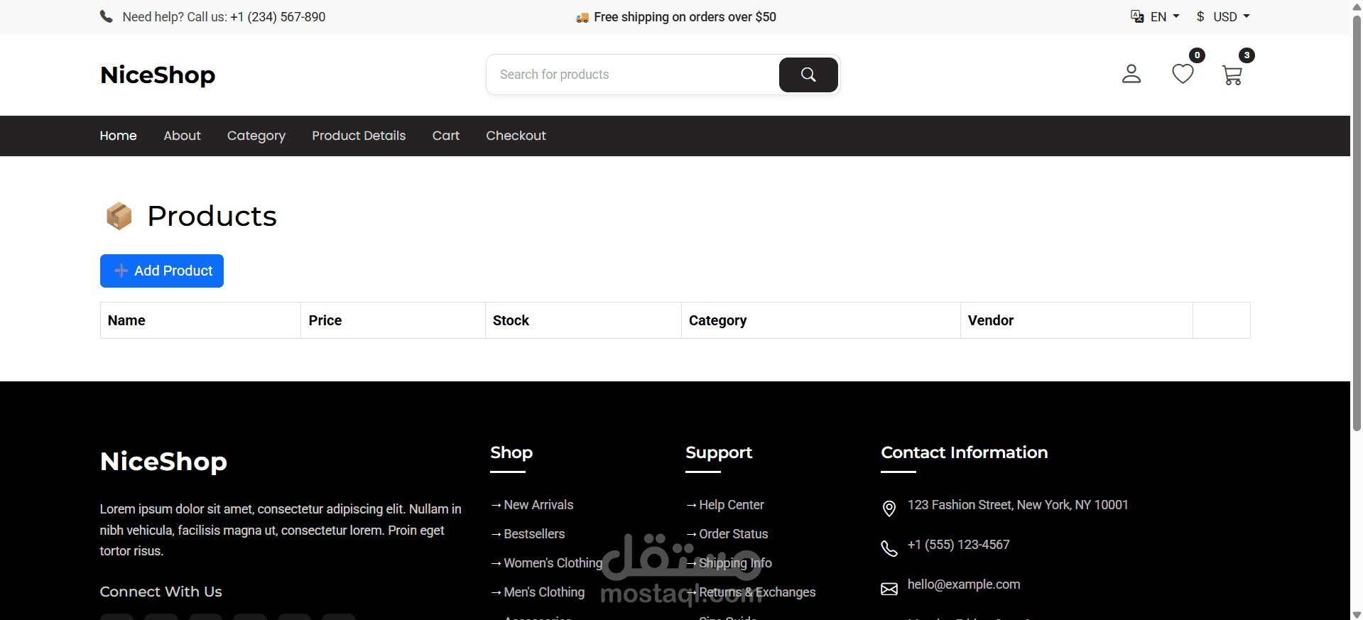 يوفر النظام واجهة مستخدم نظيفة ومتجاوبة بالكامل مع جميع الأجهزة، ويشمل مجموعة من الخصائص مثل إدارة المستخدمين، المنتجات، الطلبات، والإشعارات. كما يحتوي على مكونات تفاعلية مثل النوافذ المنبثقة (Modals)، القوائم المنسدلة (Dropdowns)، والبحث الديناميكي.