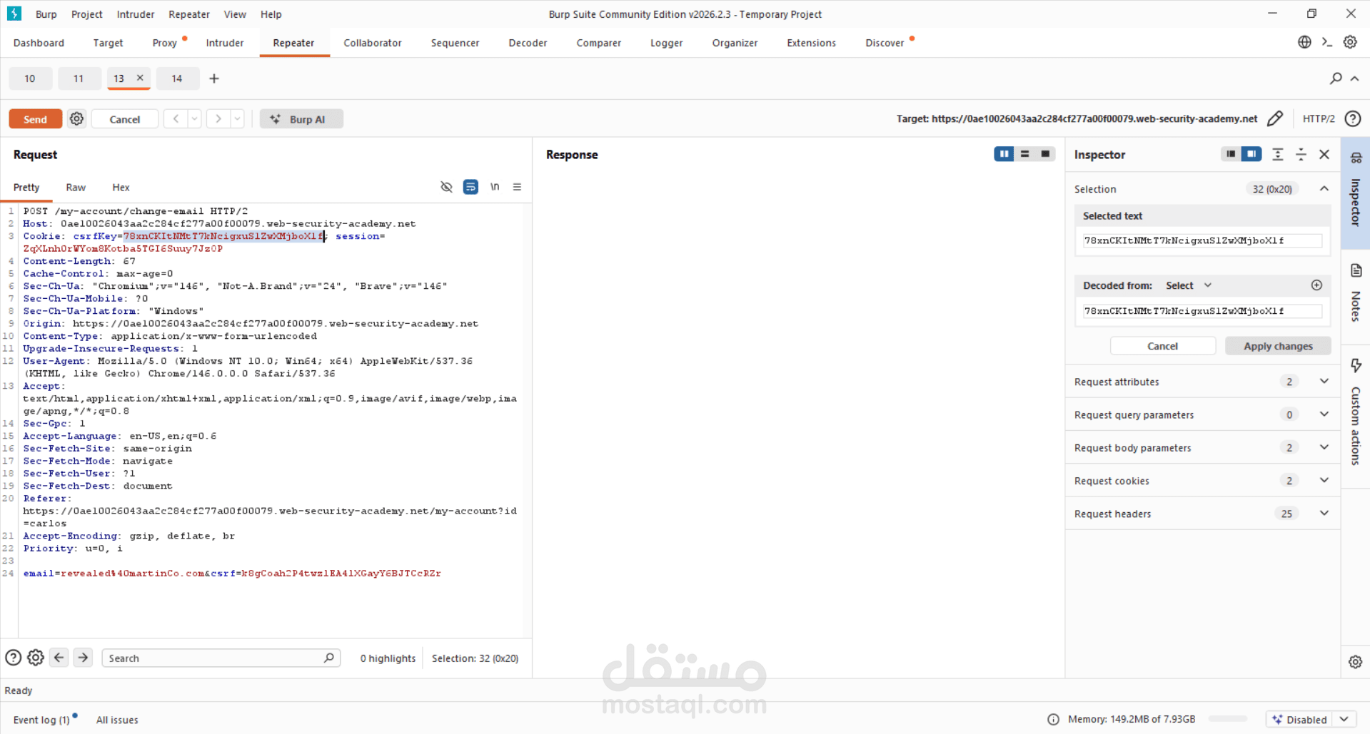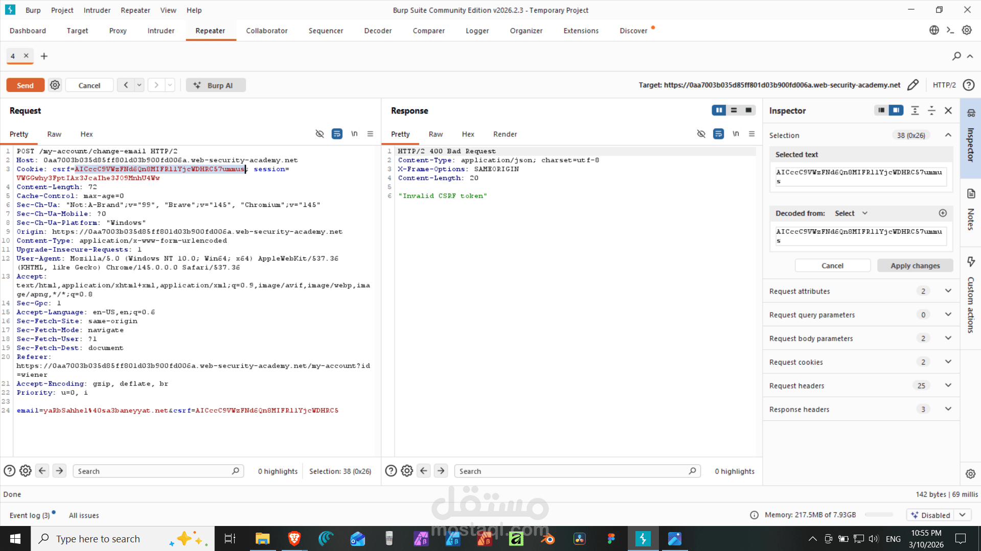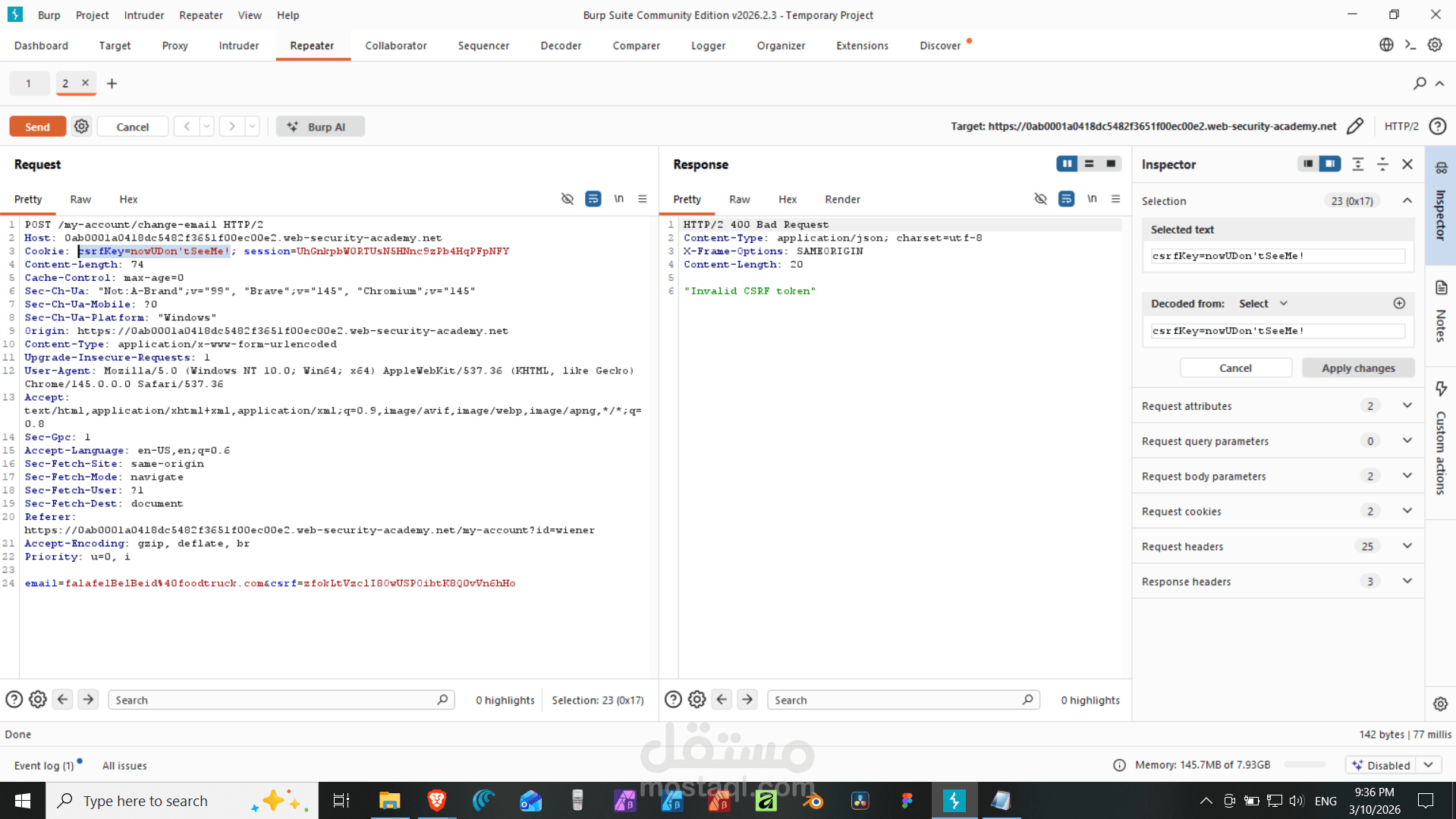 خلال هذه اللابات، تعلمت كيفية تحليل آلية الحماية في المواقع، وتجربة طرق تجاوزها في بعض الحالات، بالإضافة إلى فهم أهمية استخدام وسائل الحماية مثل التوكنات (CSRF Tokens).