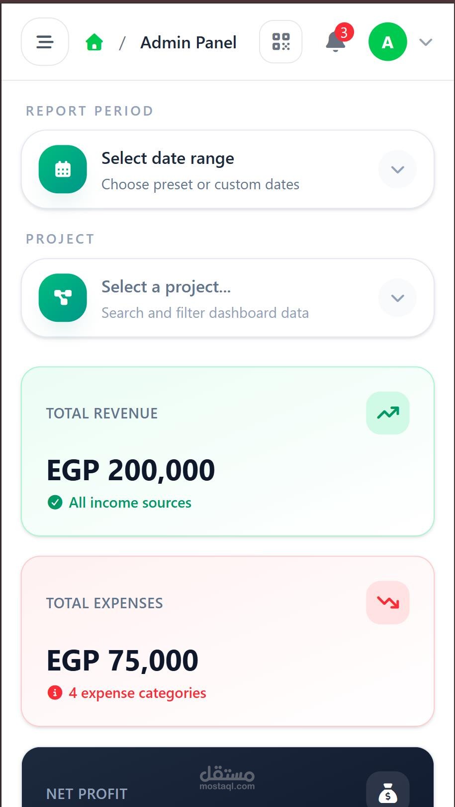 لوحة تحكم رئيسية تعرض المؤشرات المهمة بشكل بصري ومنظم.