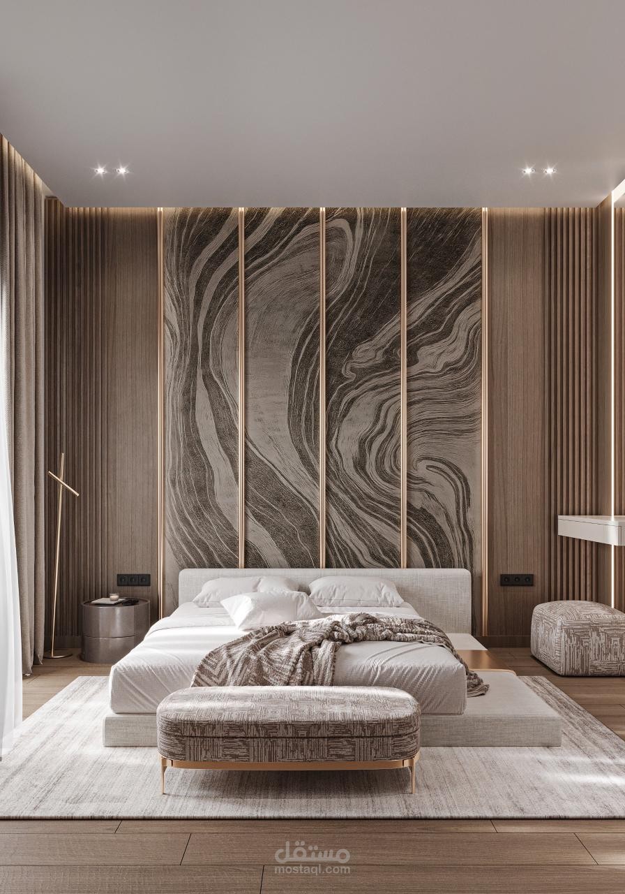 This project presents a sophisticated luxury bedroom that embodies elegance and refined comfort. The design features rich materials such as wood , velvet, and polished metals, complemented by a neutral color palette with subtle accents. Layered lighting enhances the ambiance, while carefully selected furniture pieces add a sense of grandeur and balance. Every detail is thoughtfully crafted to create a timeless, high-end space that reflects both style and exclusivity.