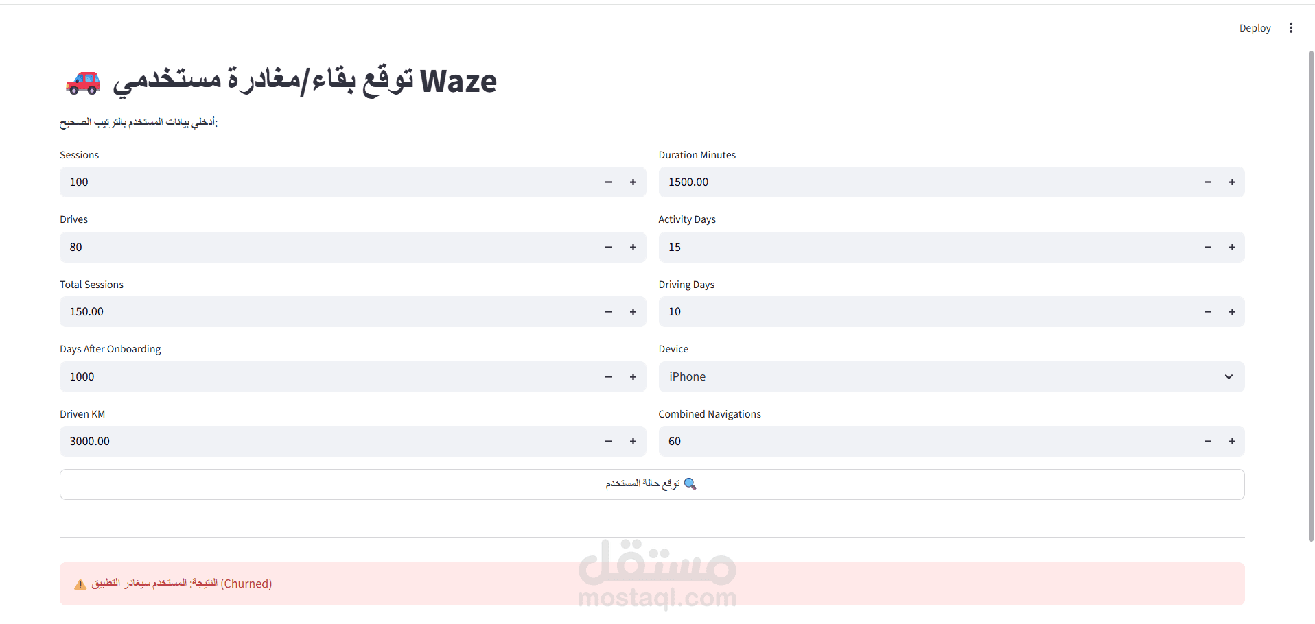 تطبيق ويب ذكي لتوقع تسرب مستخدمي Waze (Machine Learning)