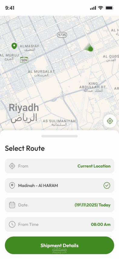 يعتمد التطبيق بشكل أساسي على خرائط جوجل لعرض موقع المستخدم والسائق مع تتبع لحظي Real-Time Tracking لرحلة الشحنة من لحظة الاستلام حتى الوصول.
