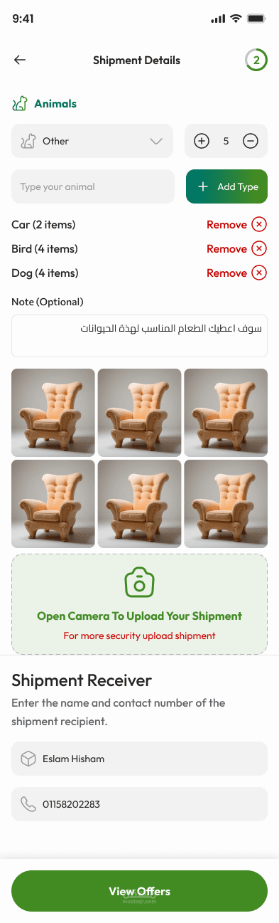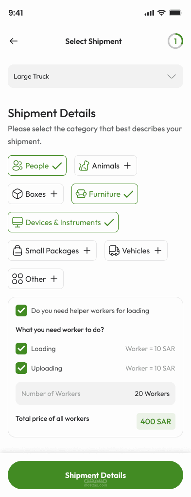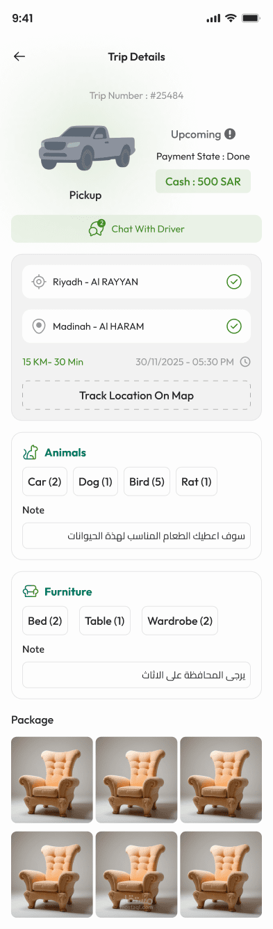 يوفّر التطبيق اختيار نوع السيارة حسب حجم الشحنة، بالإضافة إلى واجهة سلسة لكل من المستخدم والسائق، ما يجعله أشبه بخدمات مثل Uber وInDrive ولكن مخصص للنقل فقط.
