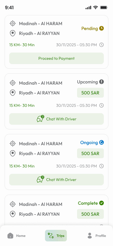 هذا المشروع يعرض قدرتي على بناء حلول عملية تعتمد على الخرائط والتتبع الفعلي وتقديم تجربة نقل سريعة وموثوقة للمستخدمين.