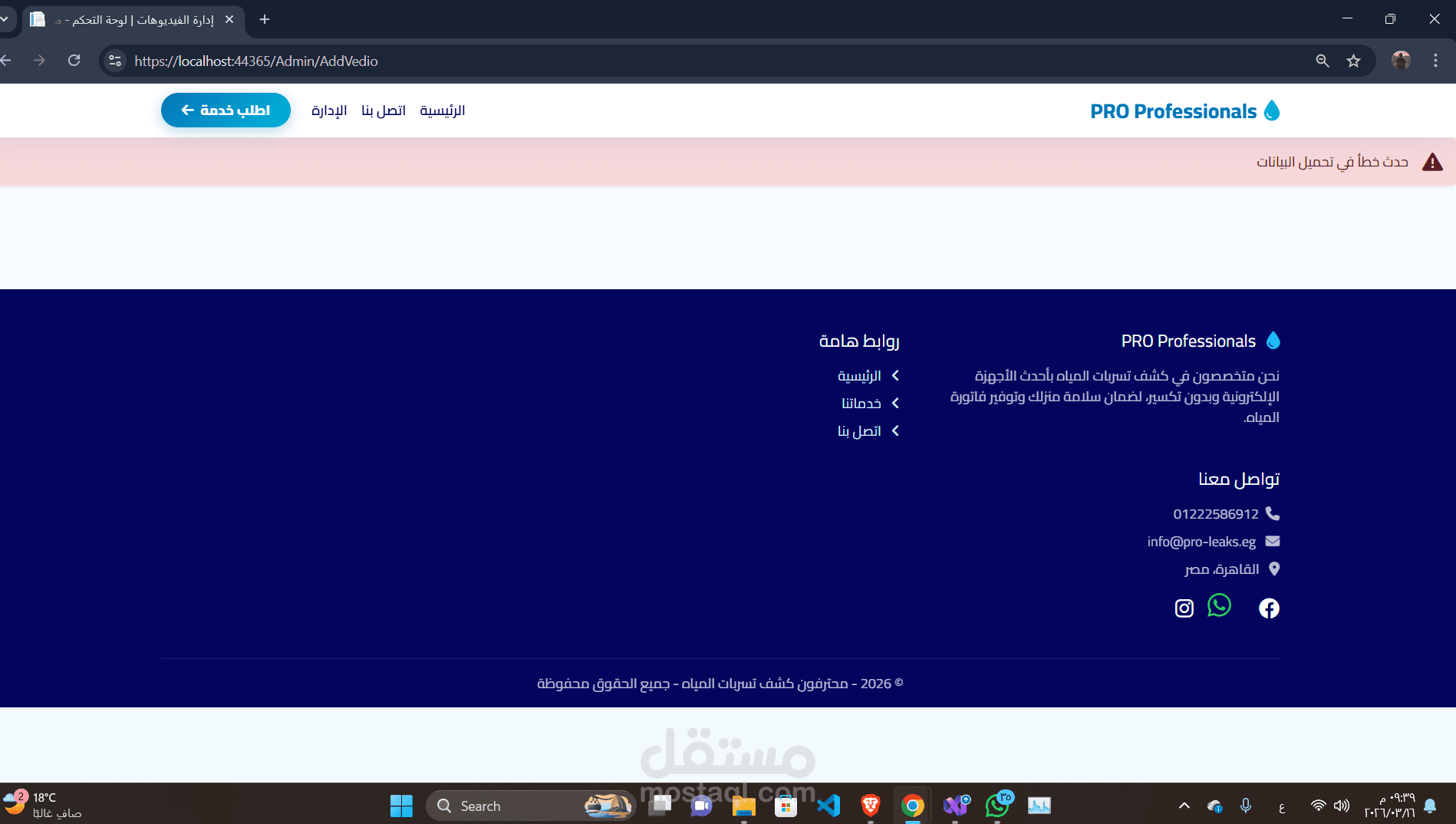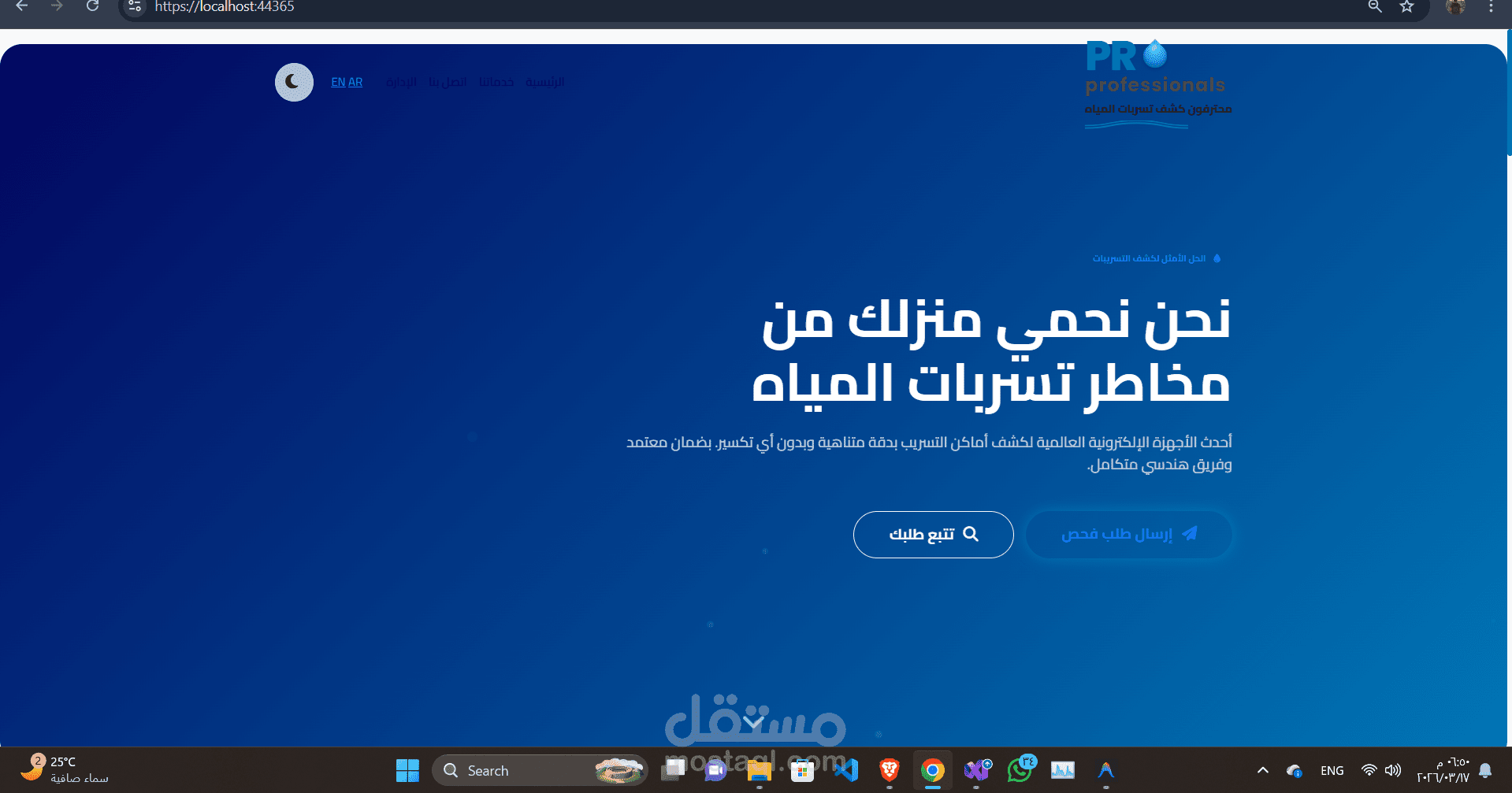 عباره عن landing page لشركه كشف تسريبات مياه + صفحه ادمن لاداره الطلبات وكل شيئ