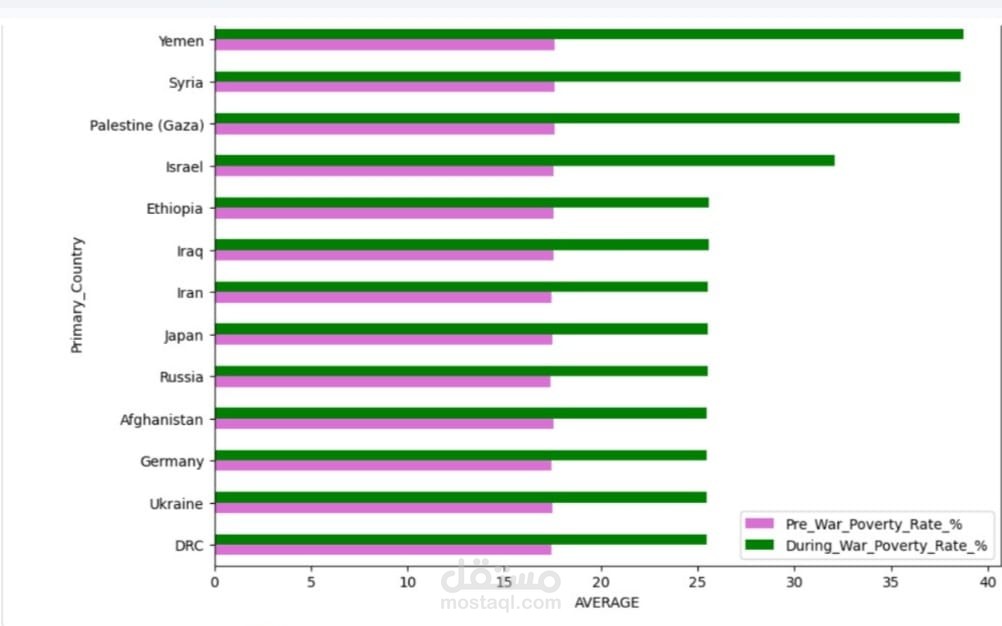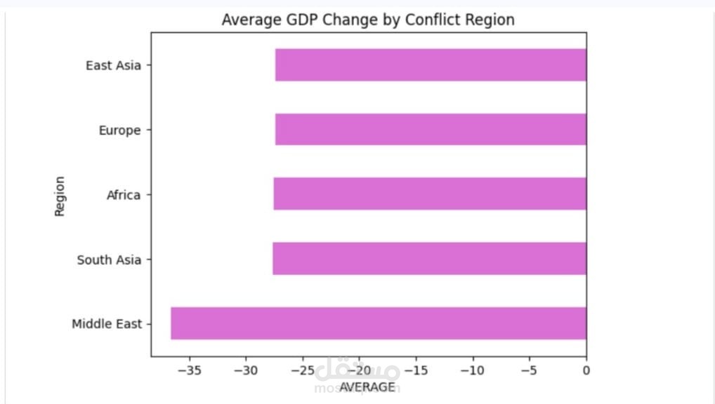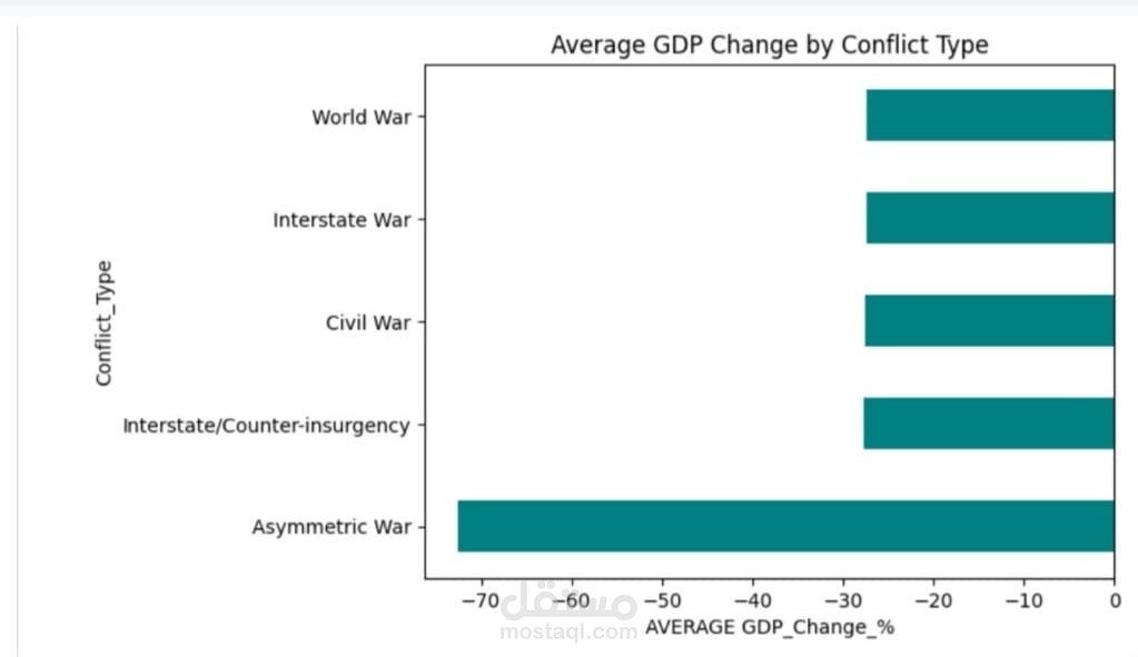 مشروع تحليل بيانات يهدف إلى دراسة التأثير الاقتصادي للنزاعات والحروب على الدول، من خلال تحليل مجموعة من المؤشرات مثل الناتج المحلي الإجمالي (GDP)، معدلات الفقر، واستمرارية الصراعات.