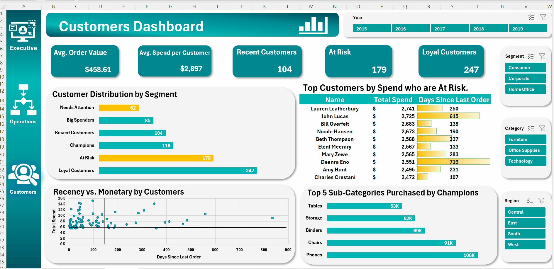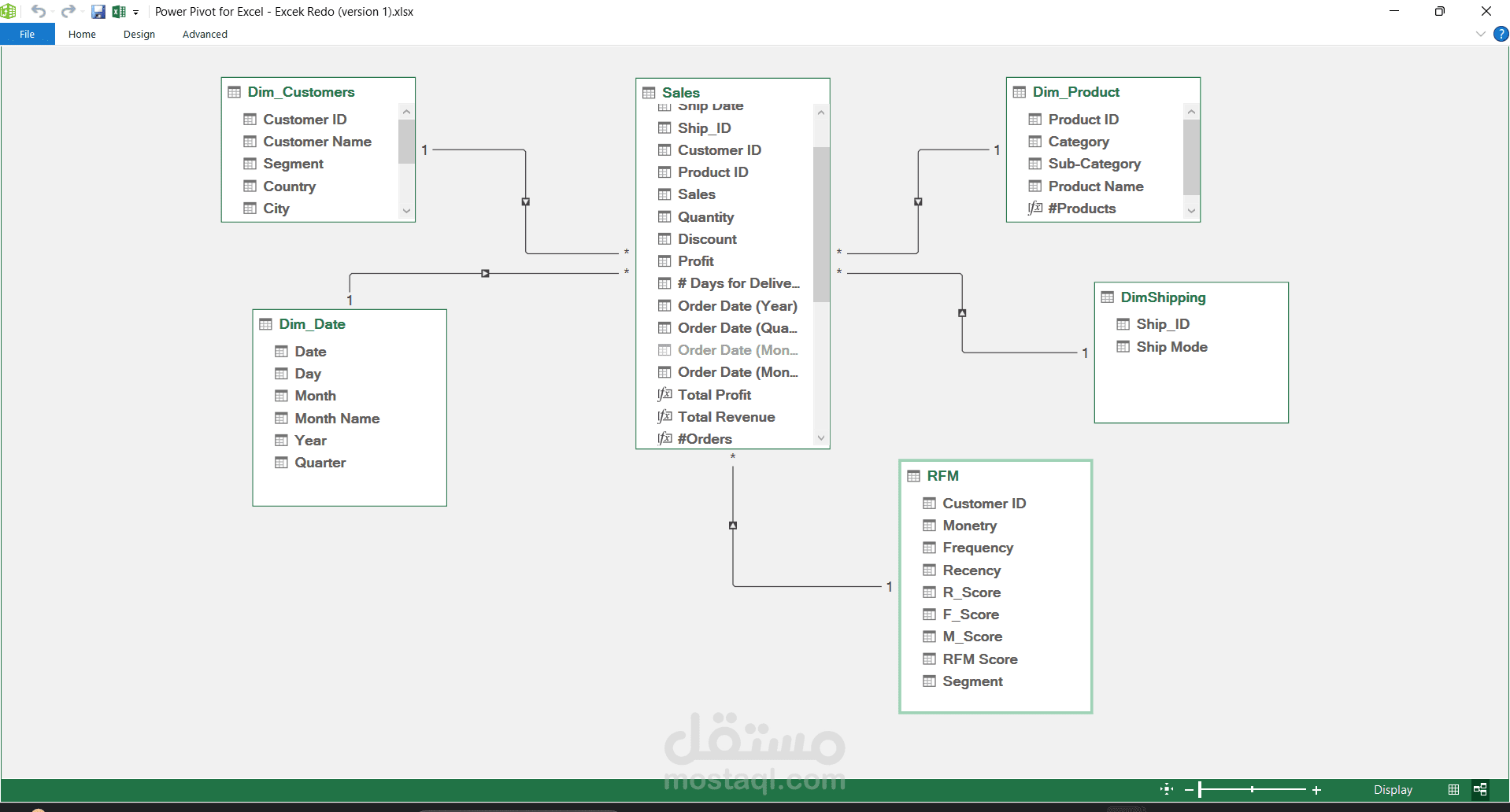 تحويل بيانات مبيعات خام إلى insights تجارية قابلة للتنفيذ باستخدام تحليل RFM لتقسيم العملاء حسب الأولوية. بناء نموذج Star Schema مع مقاييس DAX متقدمة لتحديد فرص الربح وأعلى شرائح العملاء قيمة. النتيجة: داشبورد تفاعلي يمكّن فريق المبيعات من التركيز على العملاء الأكثر تأثيراً على الإيرادات.