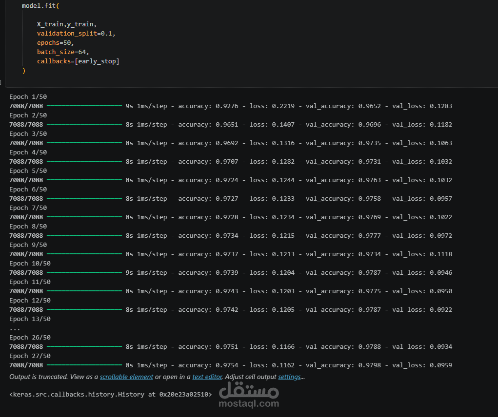 The project demonstrates the full deep learning pipeline, starting from data preprocessing to model optimization and evaluation. The dataset was cleaned by handling missing values and duplicates, followed by feature selection and normalization to prepare it for training.