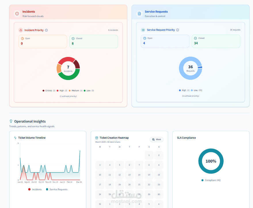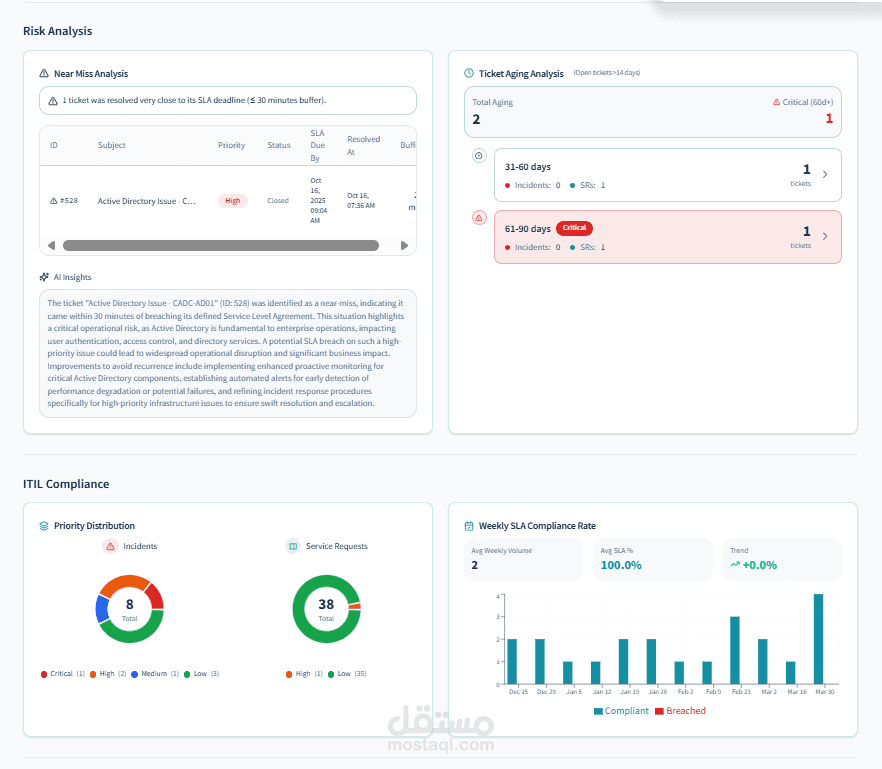 Designed a structured dashboard aligned with ITIL best practices, including: