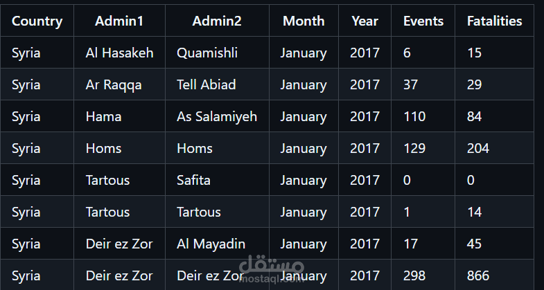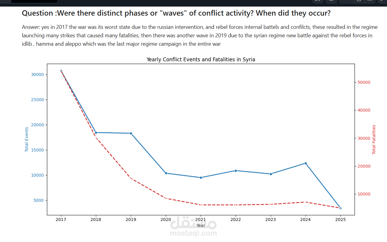 I designed and developed a data-driven analytical platform to study conflict dynamics in the Syrian Revolution from 2017 to the present, focusing on uncovering temporal and geographic patterns of violence.