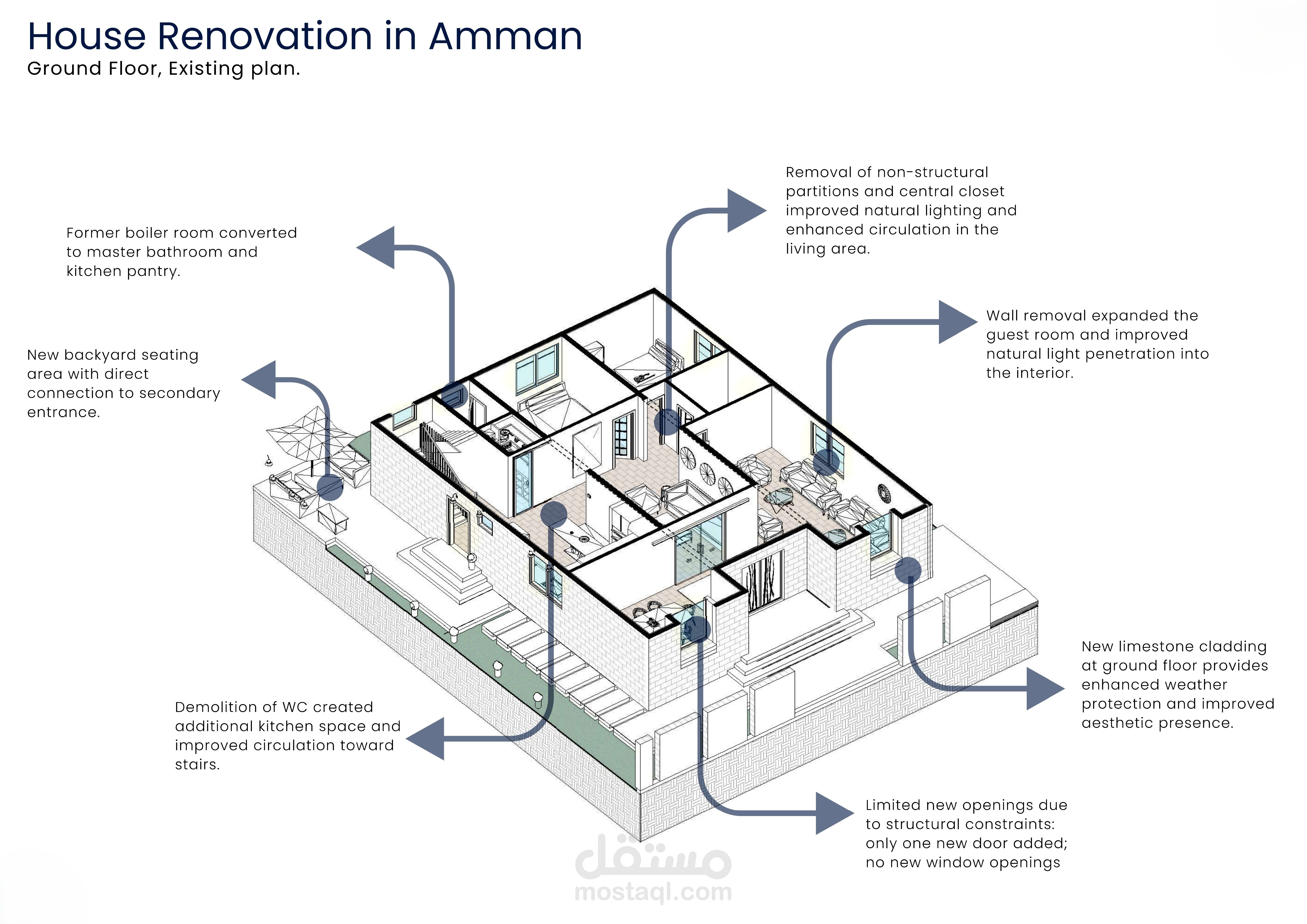 This project transforms a unit within a 1984 precast concrete housing complex, challenging its rigid structural grid and compartmentalized layout. The design strategy works with, not against, these constraints