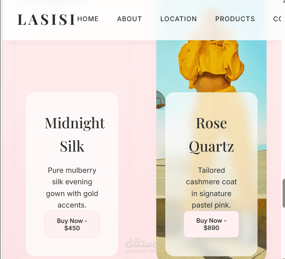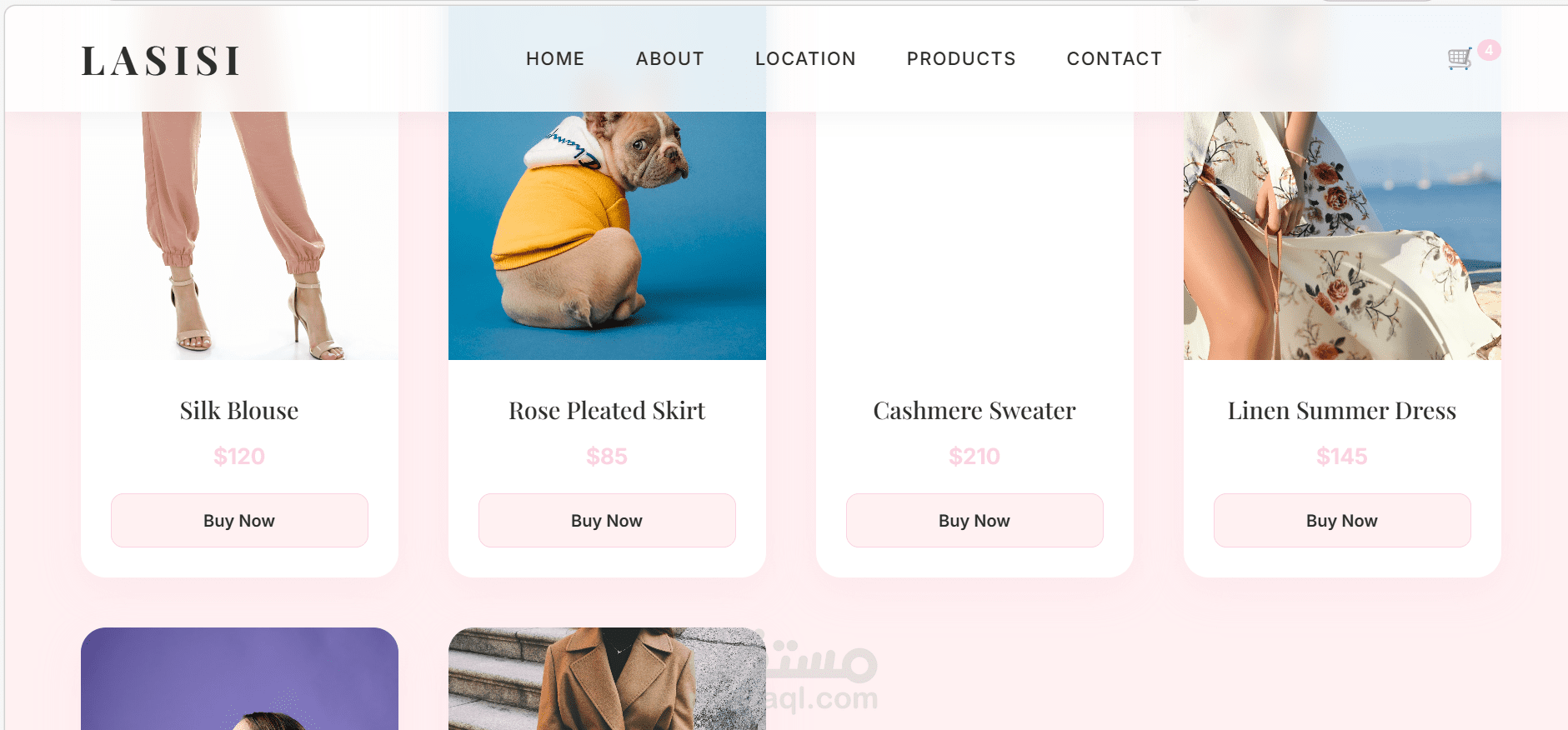 قمت بتصميم وتطوير موقع تجارة إلكترونية عصري خاص بملابس النساء باستخدام HTML وCSS وJavaScript.