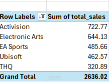 استخدام الـ Pivot Tables لتلخيص إجمالي مبيعات كبار الناشرين (Publishers).
