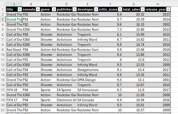 > قمت بالعمل على قاعدة بيانات ضخمة (Video Games Sales) تشمل بيانات المبيعات من 1980 حتى 2024.