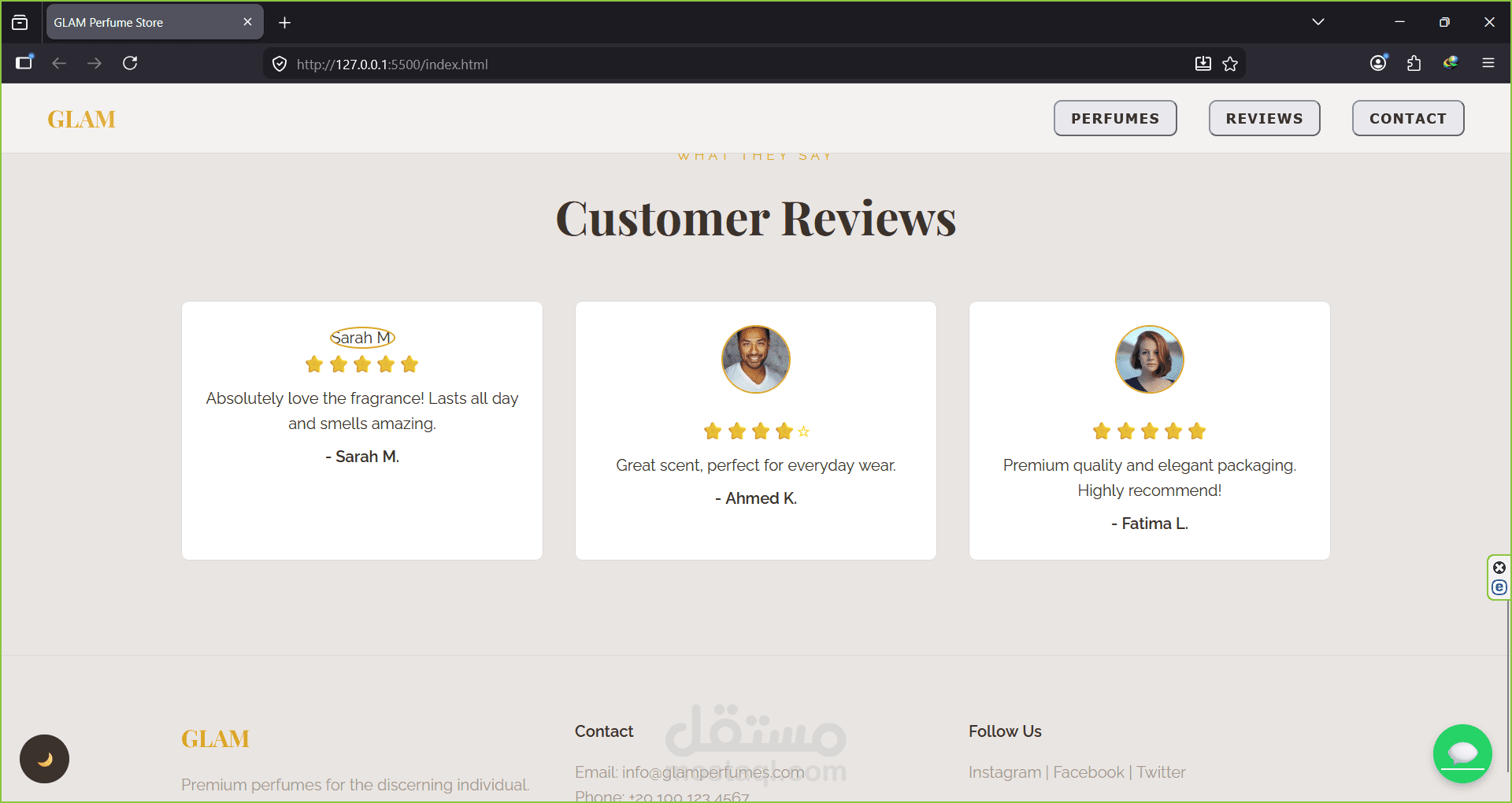 Customer Reviews Section showcasing user testimonials with star ratings.