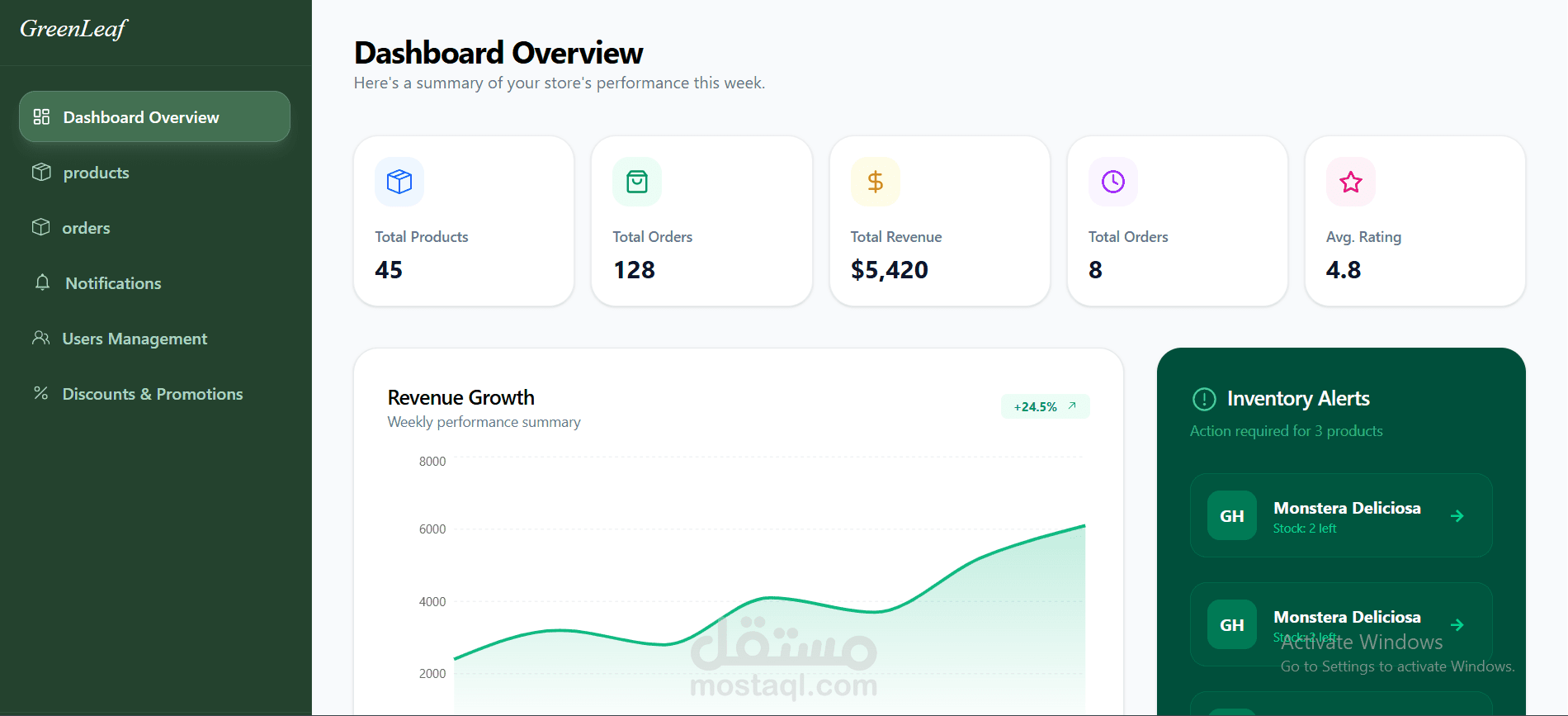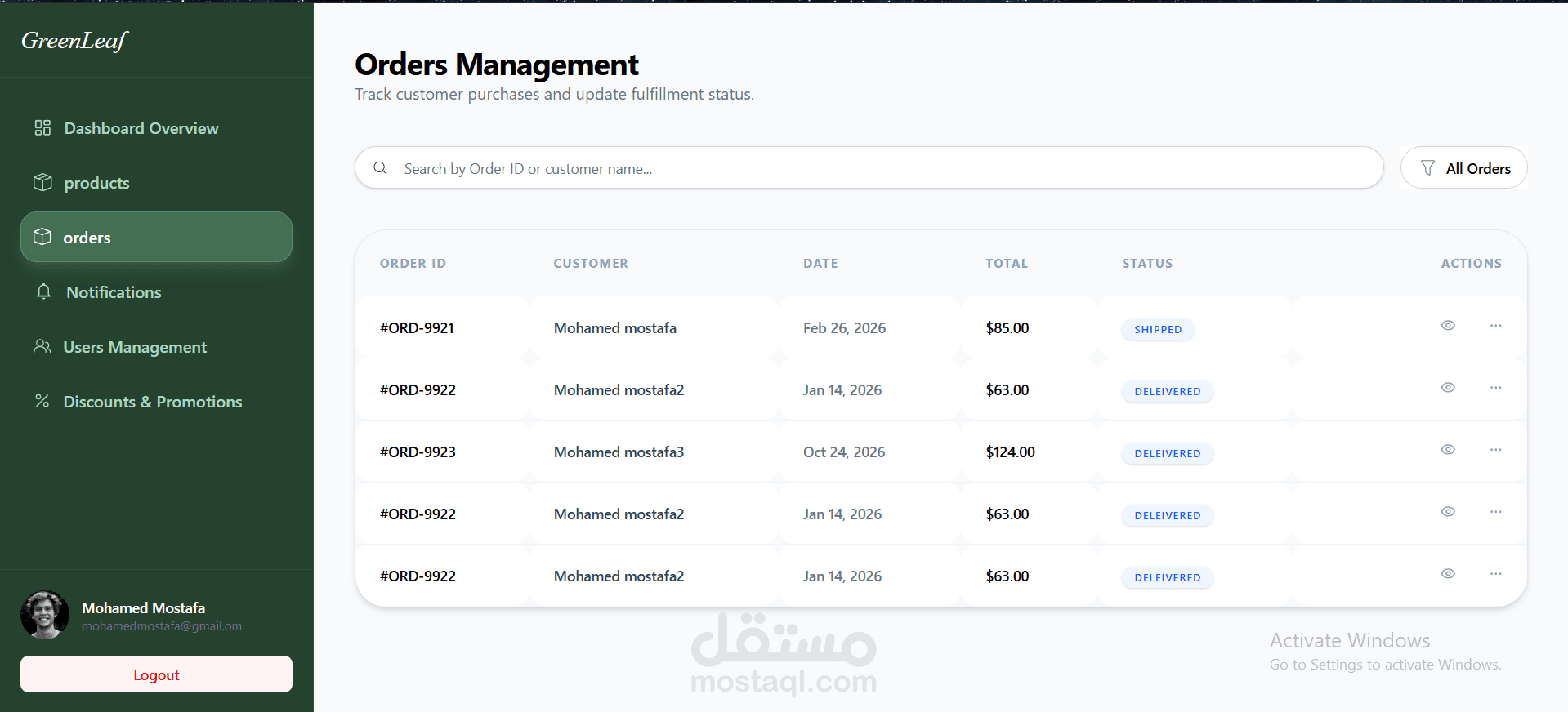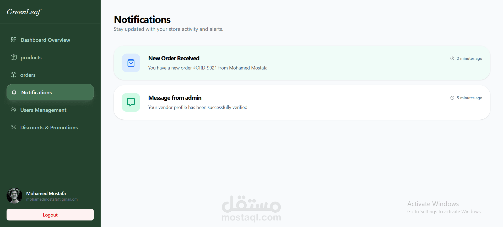 قمت بتطوير منصة متجر إلكتروني متكاملة تدعم تعدد الأدوار (Multi-Role System)، حيث تشمل واجهة للمستخدمين، ولوحة تحكم للبائعين (Vendors)، ولوحة إدارة كاملة للمشرف (Admin Dashboard).