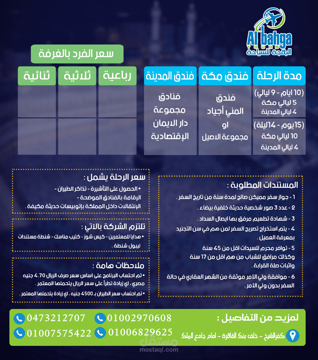 مجموعة من الاعلاانات تم تصميمها لشركة البهجة للسياحة من بروشورات و تصميم هوية وتصميم كروت شخصية واعلانات ممولة عبر الفيسبوك.