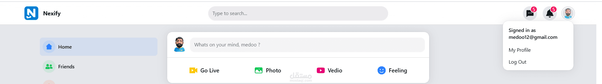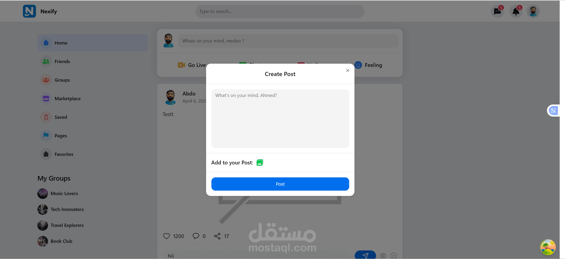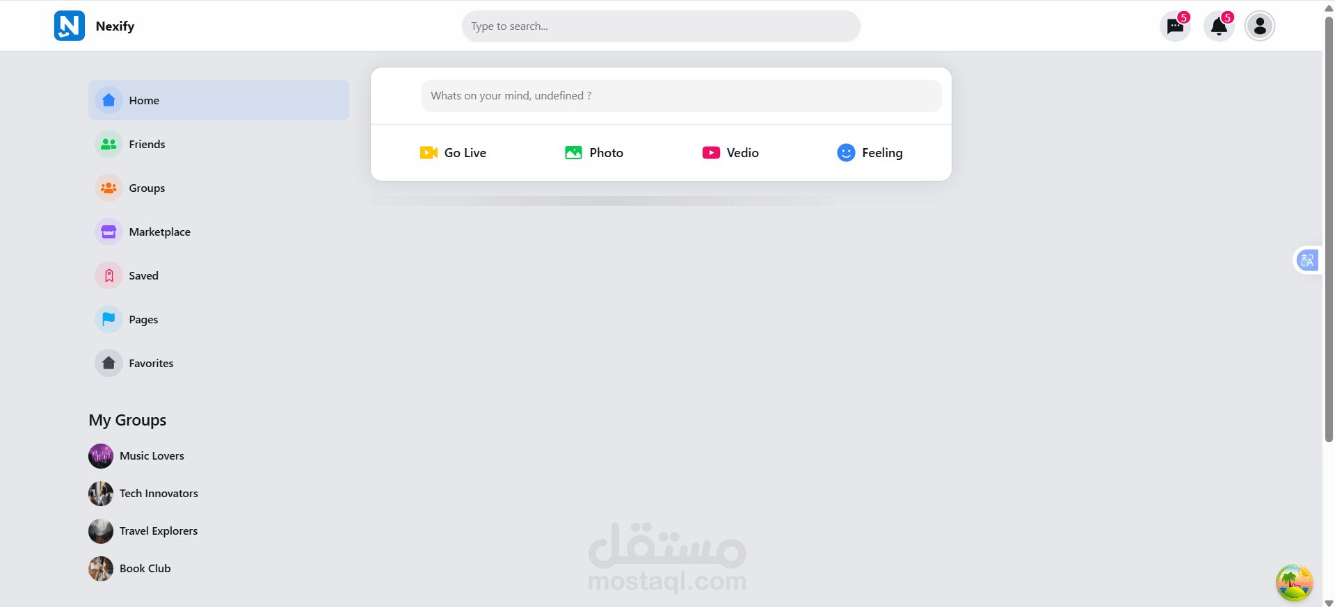 قمت بتطوير منصة تواصل اجتماعي متكاملة باستخدام مكتبة React، مع الاعتماد على تقنيات حديثة لتحسين الأداء وتجربة المستخدم.