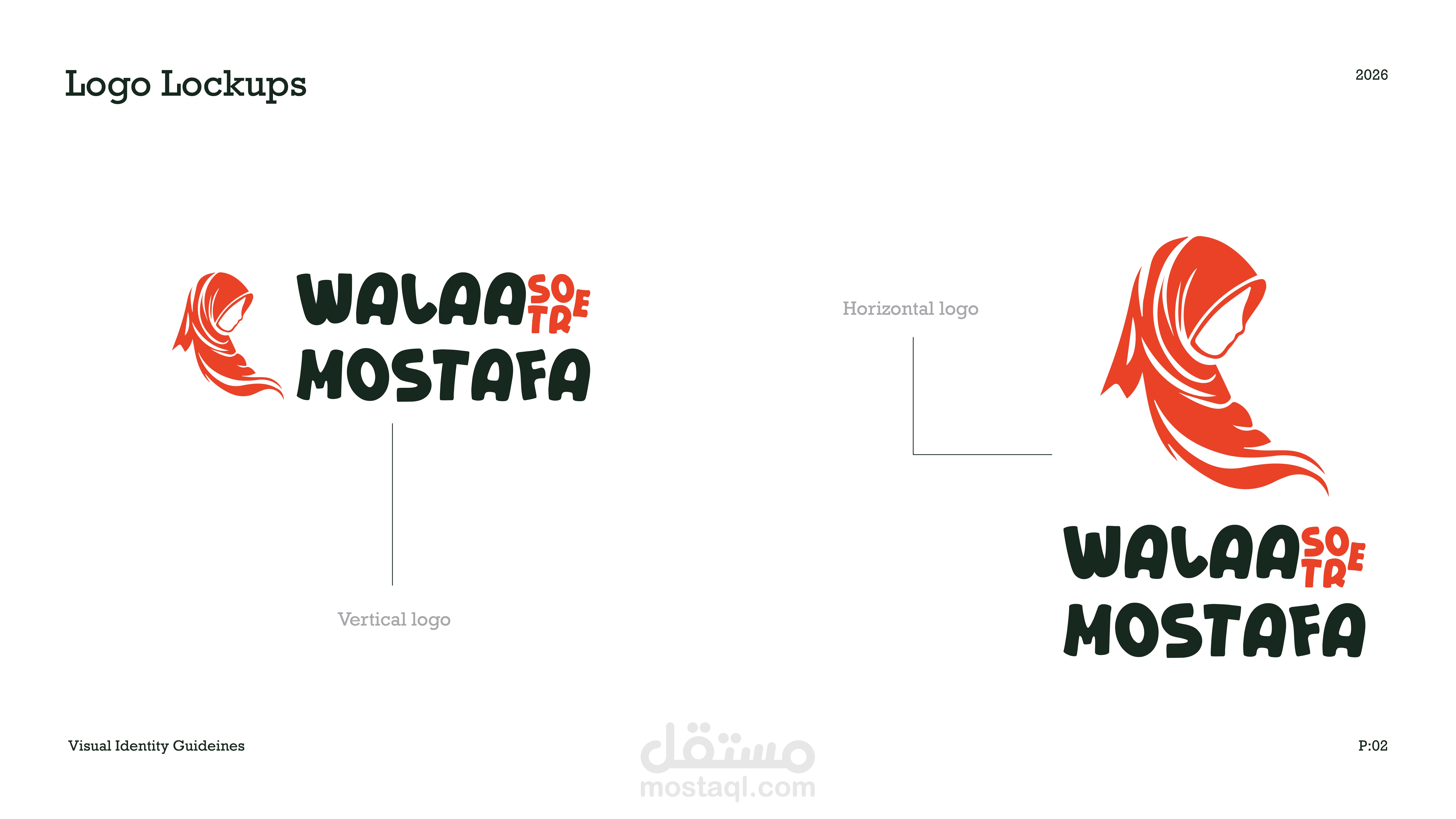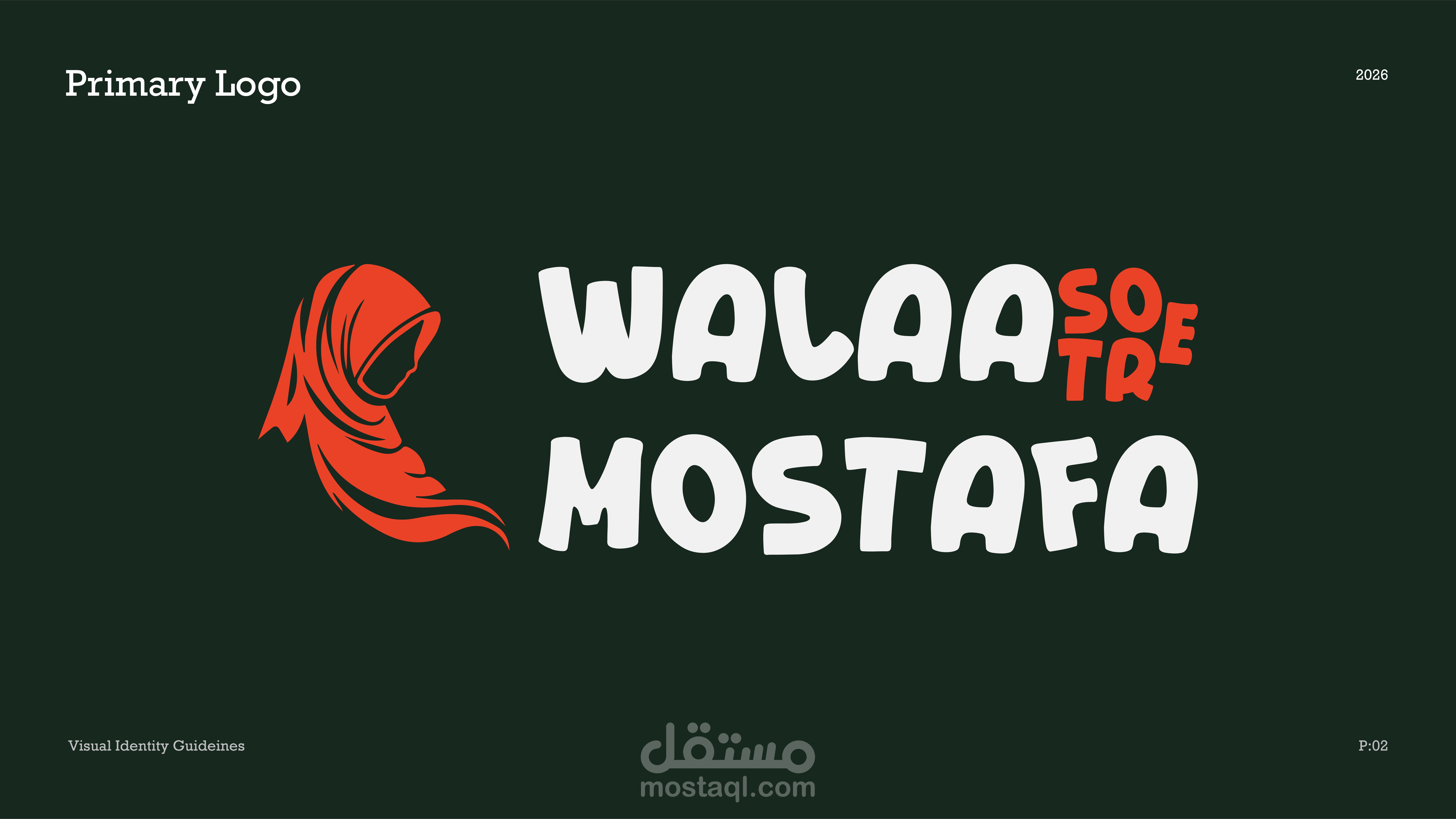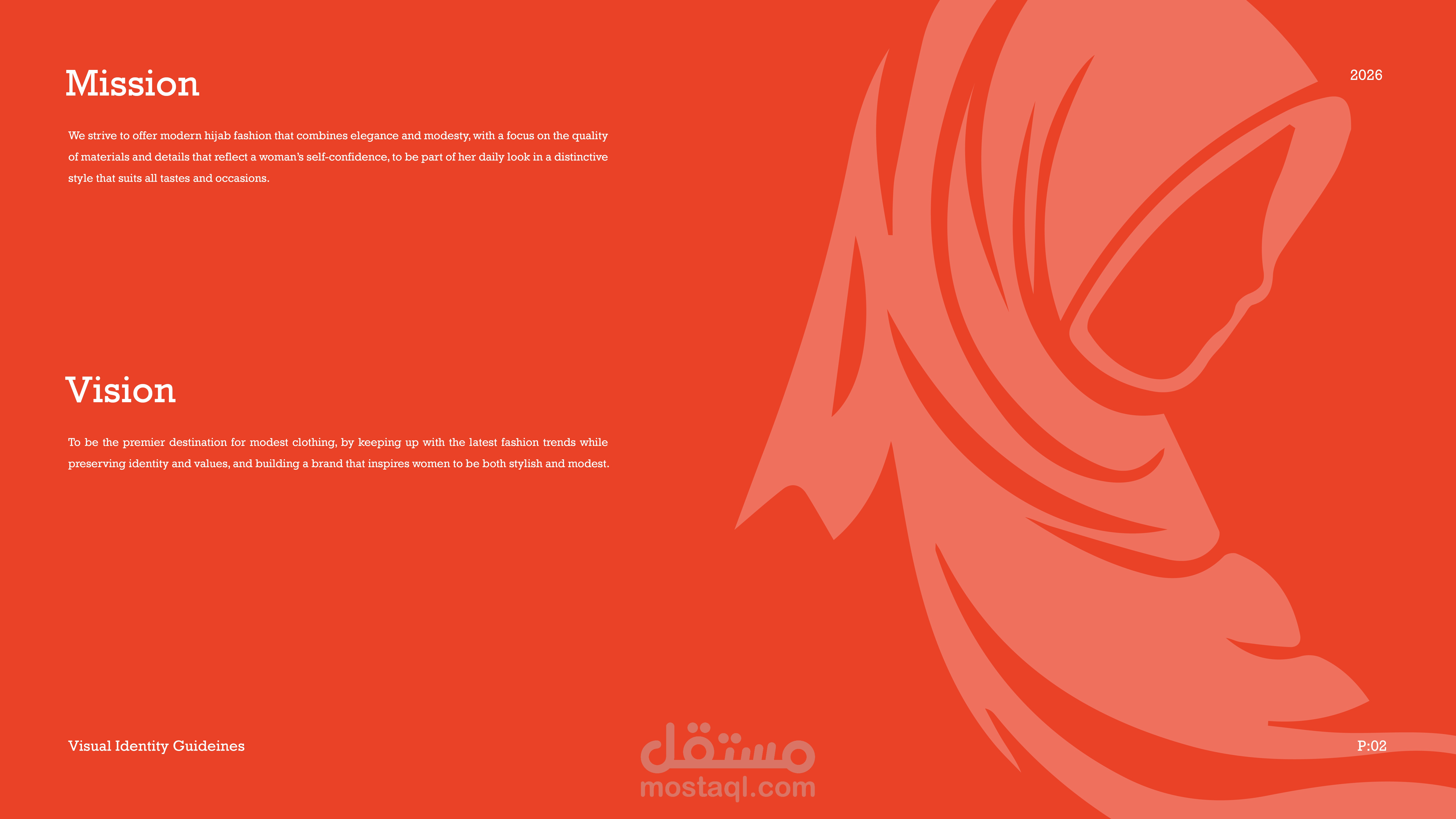 يعتمد الشعار على عنصر بصري قوي يتمثل في رسم توضيحي أنيق لامرأة محجبة، بخطوط انسيابية ناعمة تعكس الأنوثة، الرقي، والاحتشام. استخدام اللون الأحمر في الأيقونة يلفت الانتباه ويعبر عن الثقة والقوة، كما يمنح العلامة حضورًا مميزًا وسهل التذكر.