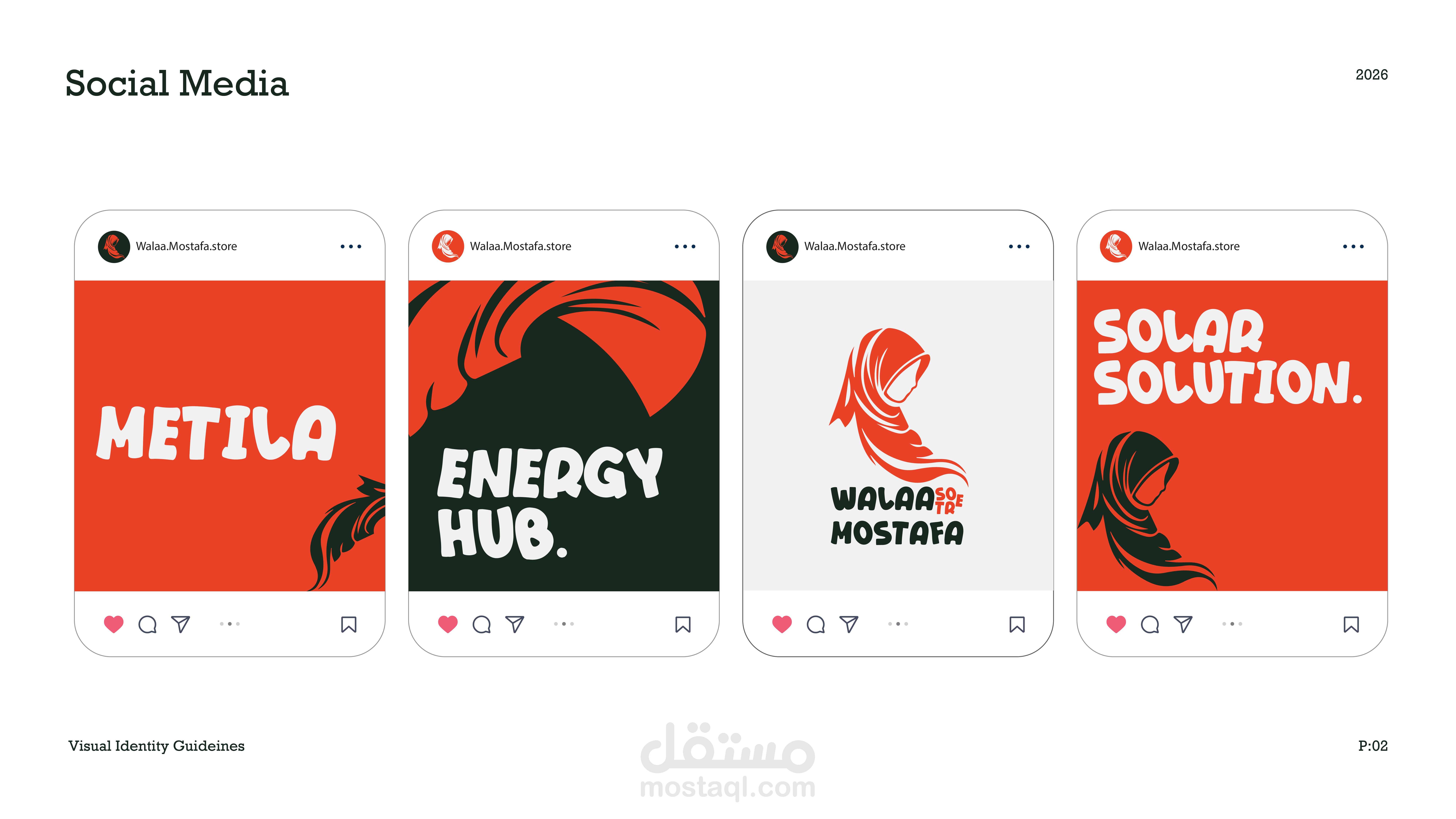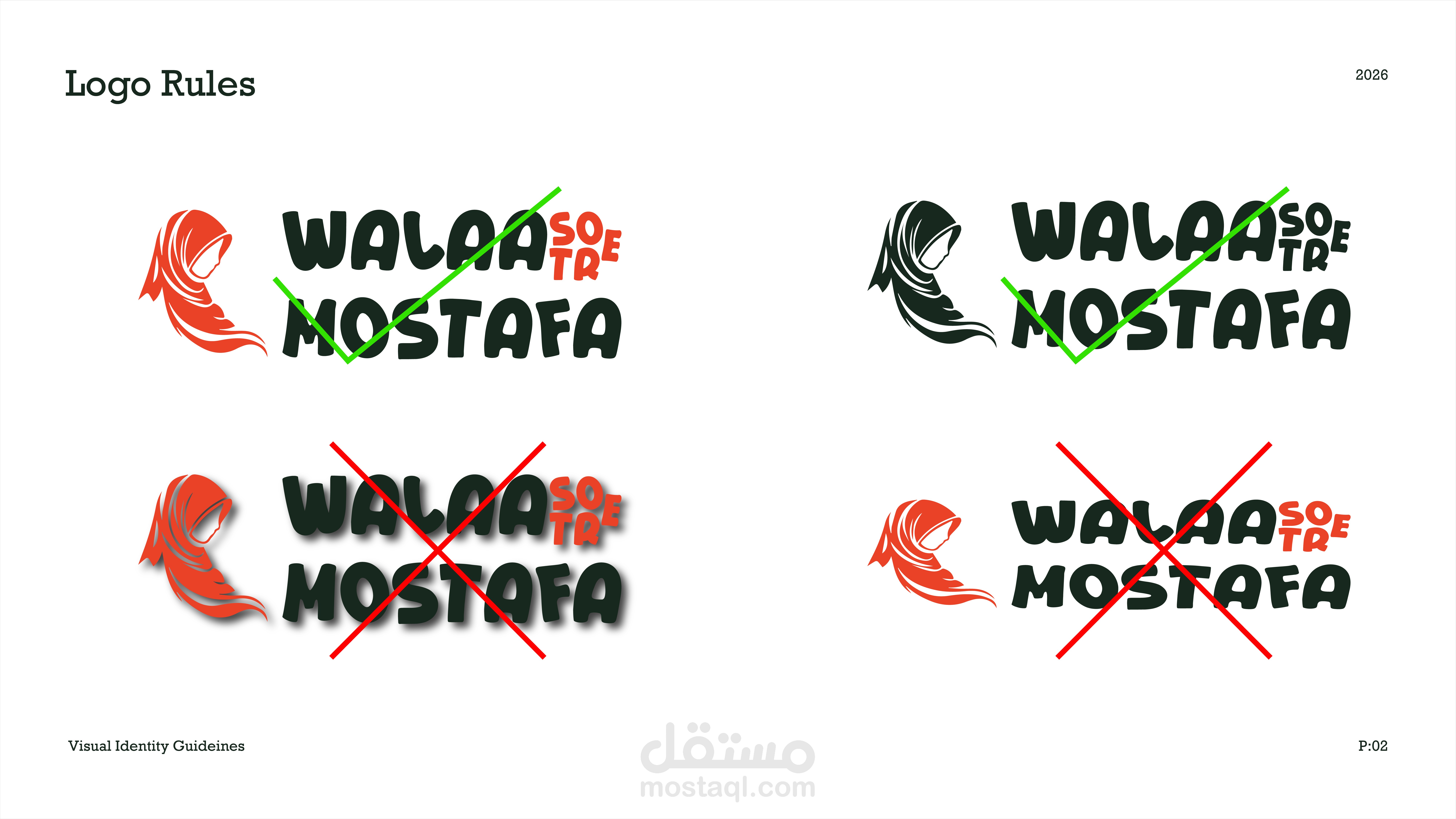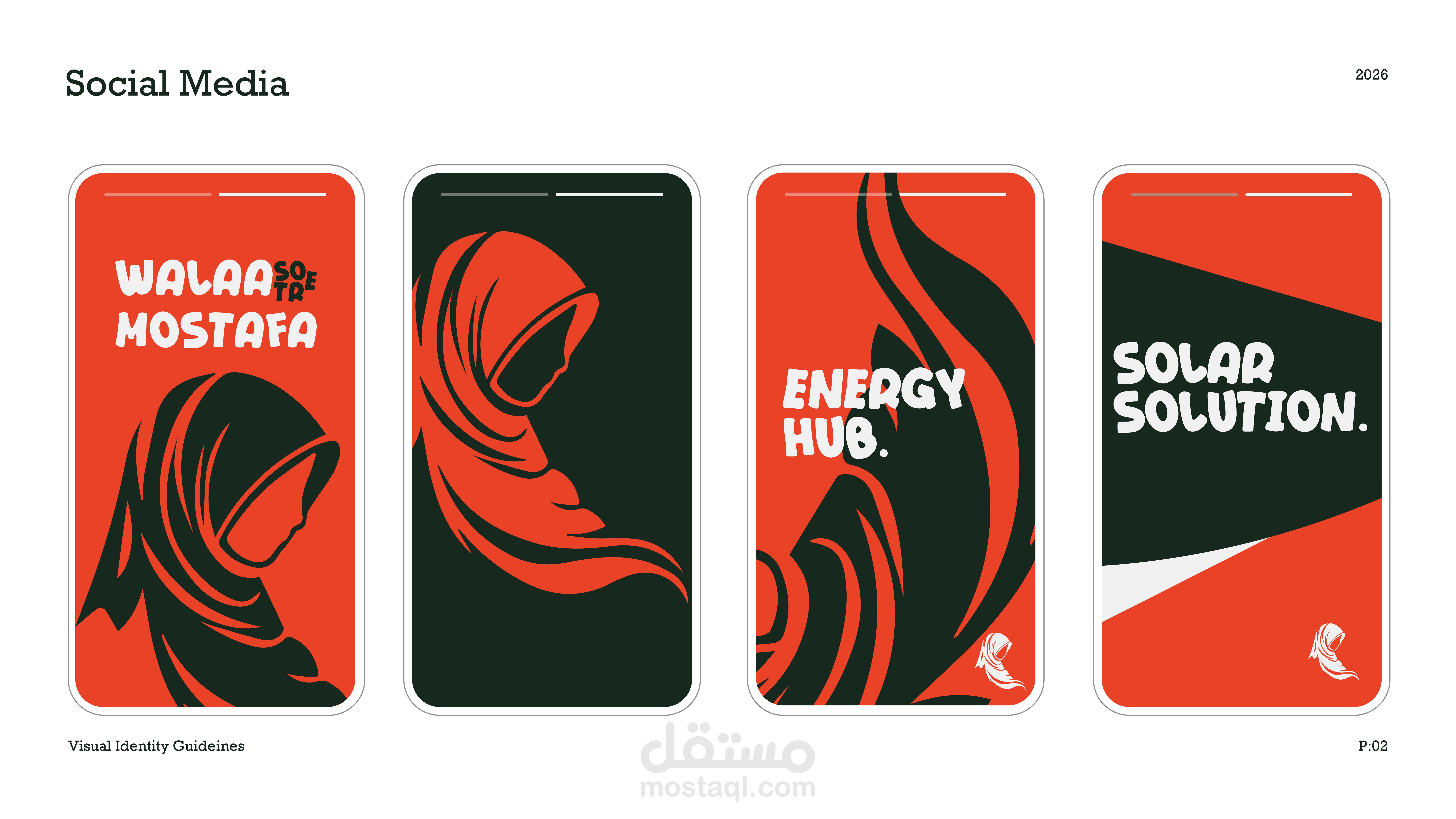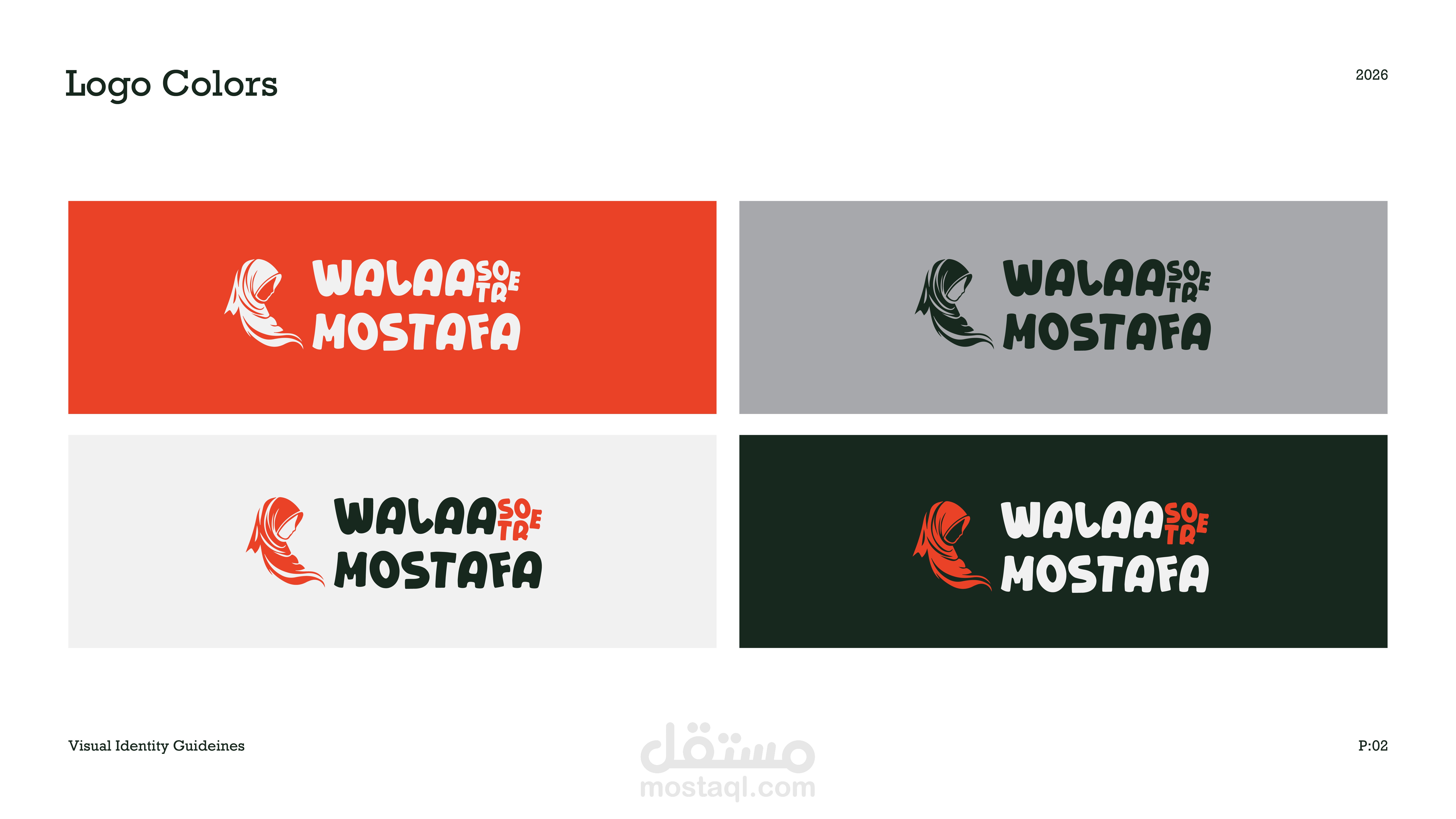 يعتمد الشعار على عنصر بصري قوي يتمثل في رسم توضيحي أنيق لامرأة محجبة، بخطوط انسيابية ناعمة تعكس الأنوثة، الرقي، والاحتشام. استخدام اللون الأحمر في الأيقونة يلفت الانتباه ويعبر عن الثقة والقوة، كما يمنح العلامة حضورًا مميزًا وسهل التذكر.