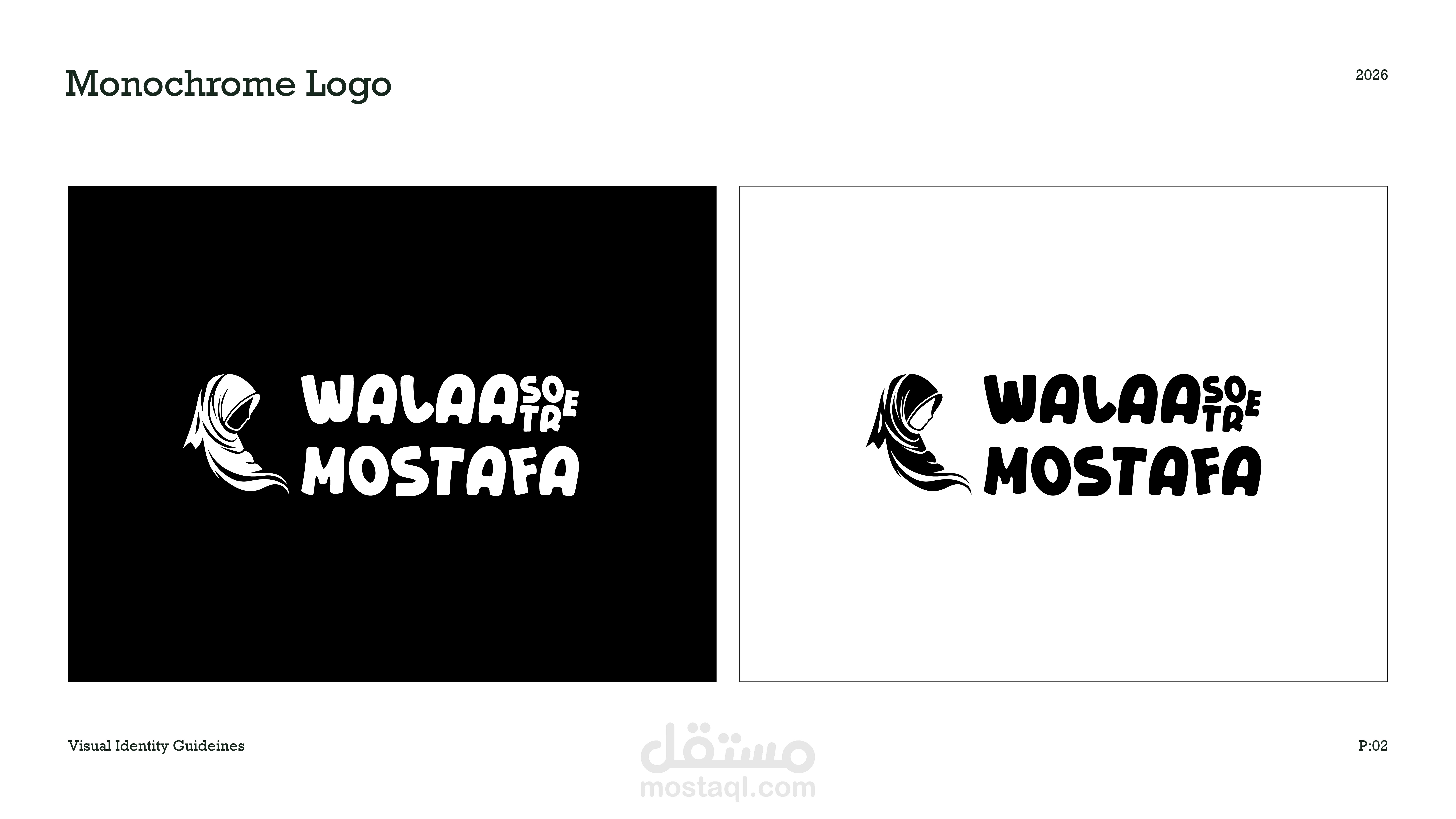 هذا التصميم يعرض الشعار الأساسي (Primary Logo) لعلامة تجارية تحمل اسم **Walaa Mostafa Store**، ويعكس هوية واضحة موجهة لمنتجات المحجبات والأزياء المحتشمة بأسلوب عصري وجذاب.