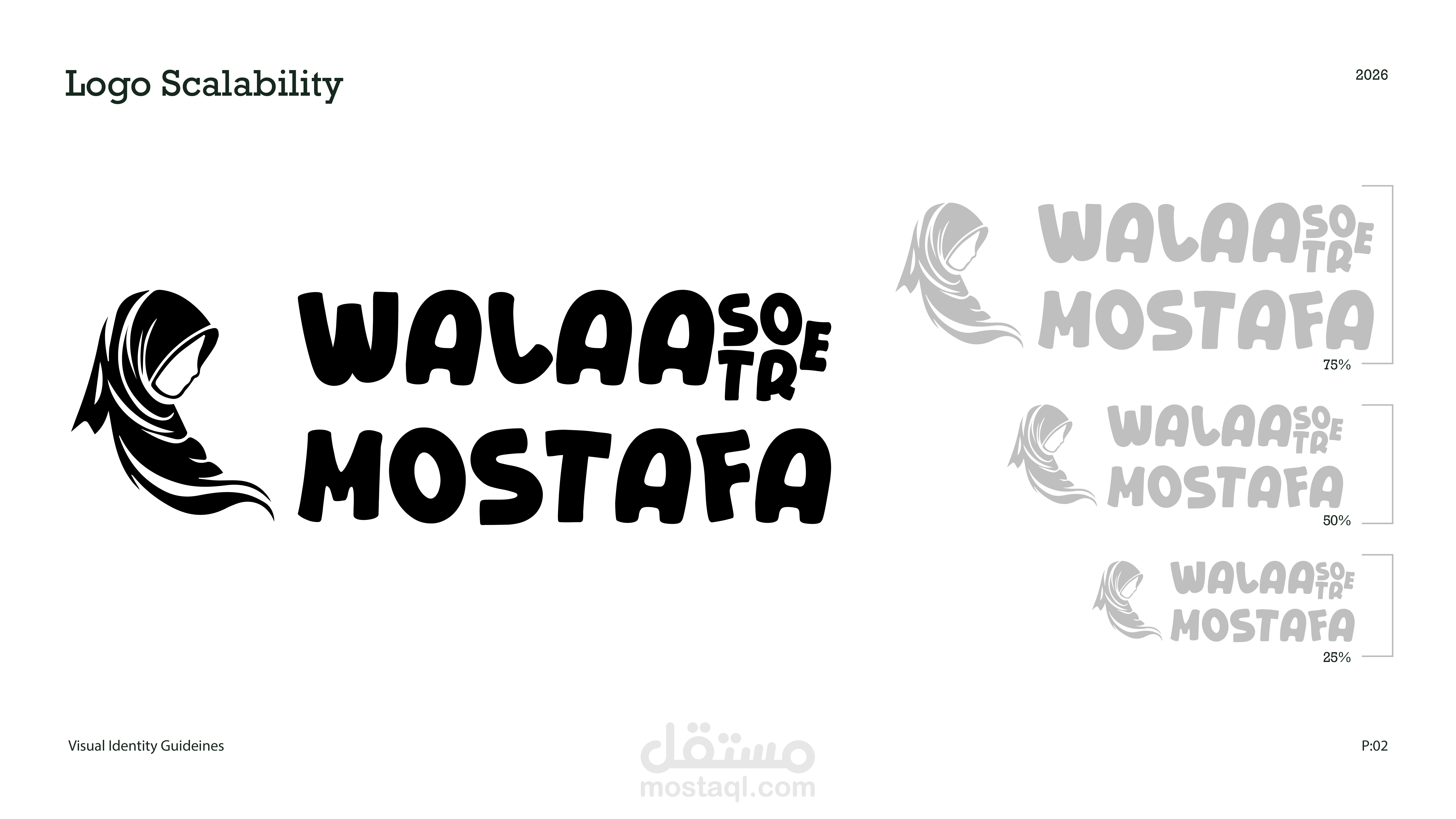 توزيع العناصر بين الأيقونة والنص متوازن، حيث تأتي الأيقونة على الجانب لتعزز من الهوية البصرية دون أن تطغى على الاسم، مما يسهل استخدام الشعار في مختلف التطبيقات مثل السوشيال ميديا، التغليف، والمطبوعات.