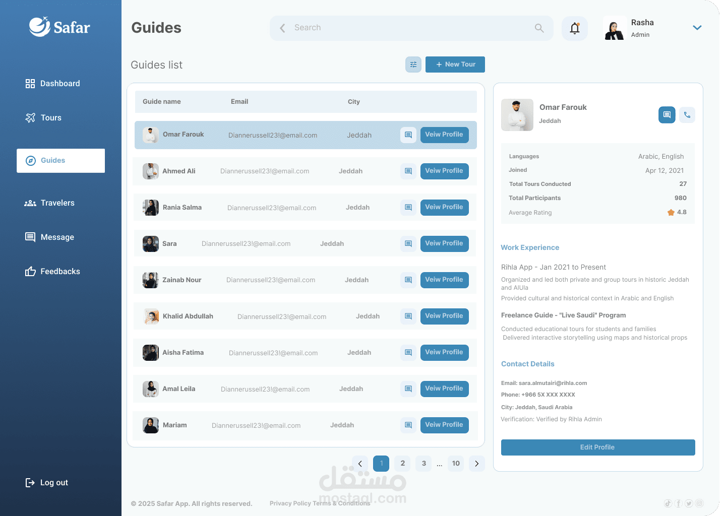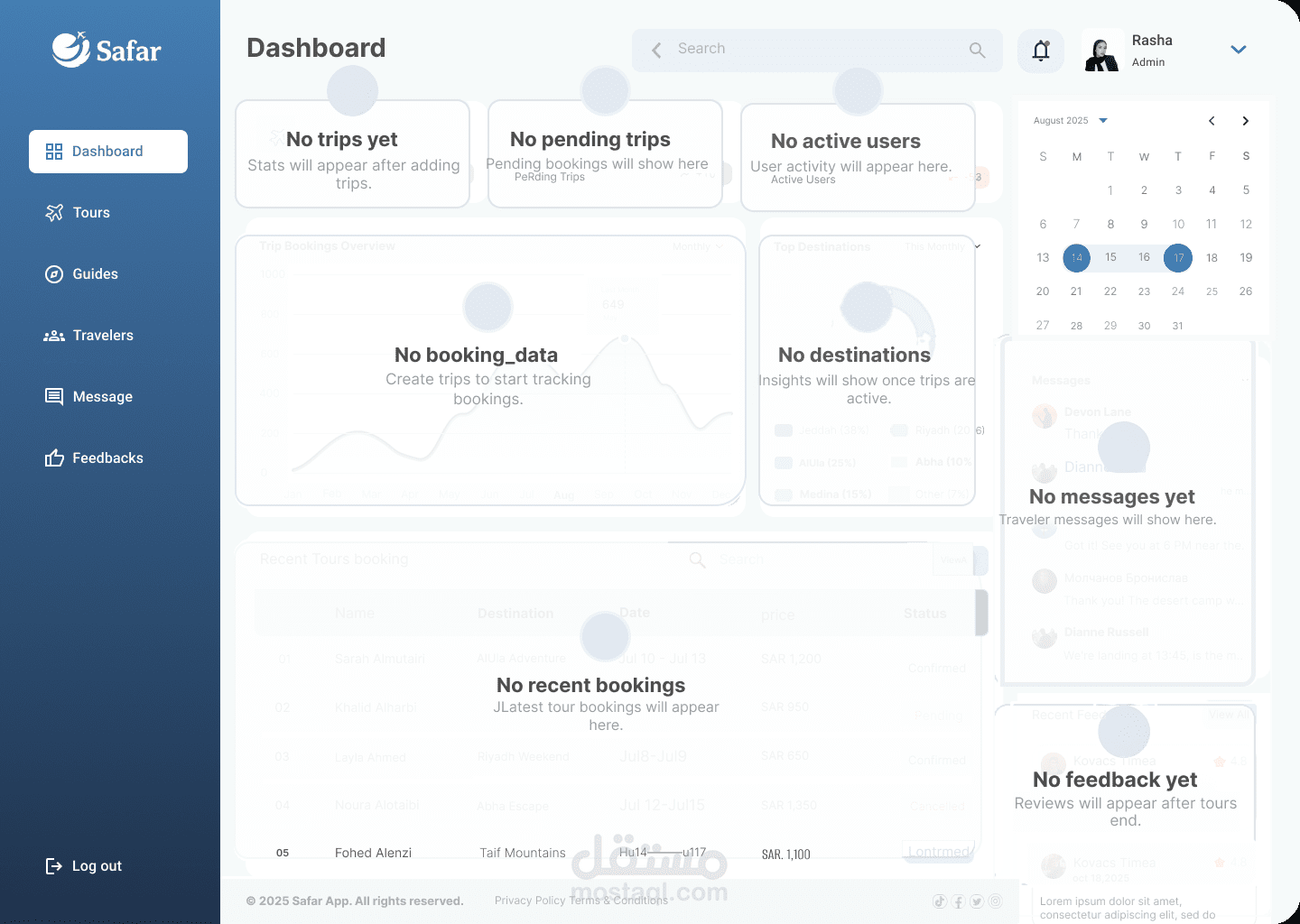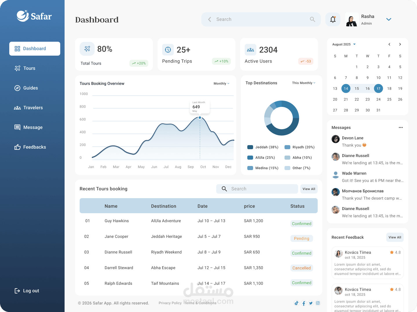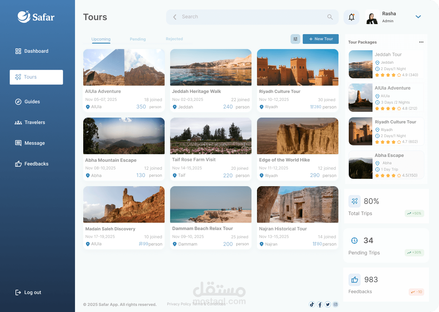 قمت بتصميم Dashboard احترافي لتطبيق سياحي باستخدام Figma، يهدف إلى تسهيل إدارة الرحلات والمستخدمين بطريقة منظمة وسلسة.