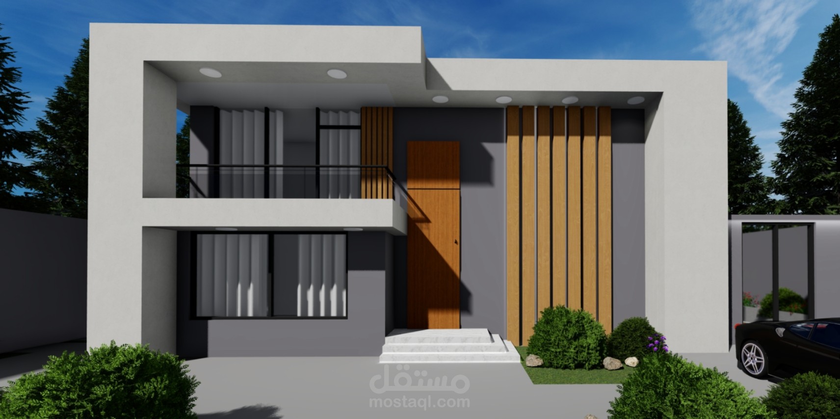 هذا المشروع عبارة عن تصميم واجهة فيلا حديثة بأسلوب عصري، يركز على التفاصيل المعمارية والإضاءة الطبيعية. تم استخدام برامج AutoCAD وRevit لتصميم المخططات، وLumion وPhotoshop لإنتاج رندرات واقعية عالية الجودة.