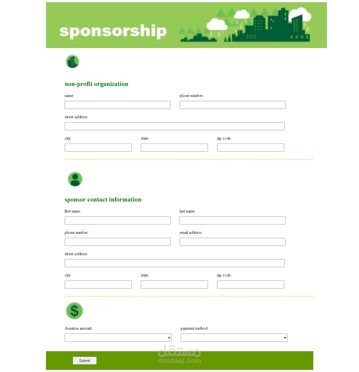 • صفحة هبوط كاملة ومنظمة في أقسام مرتبة.