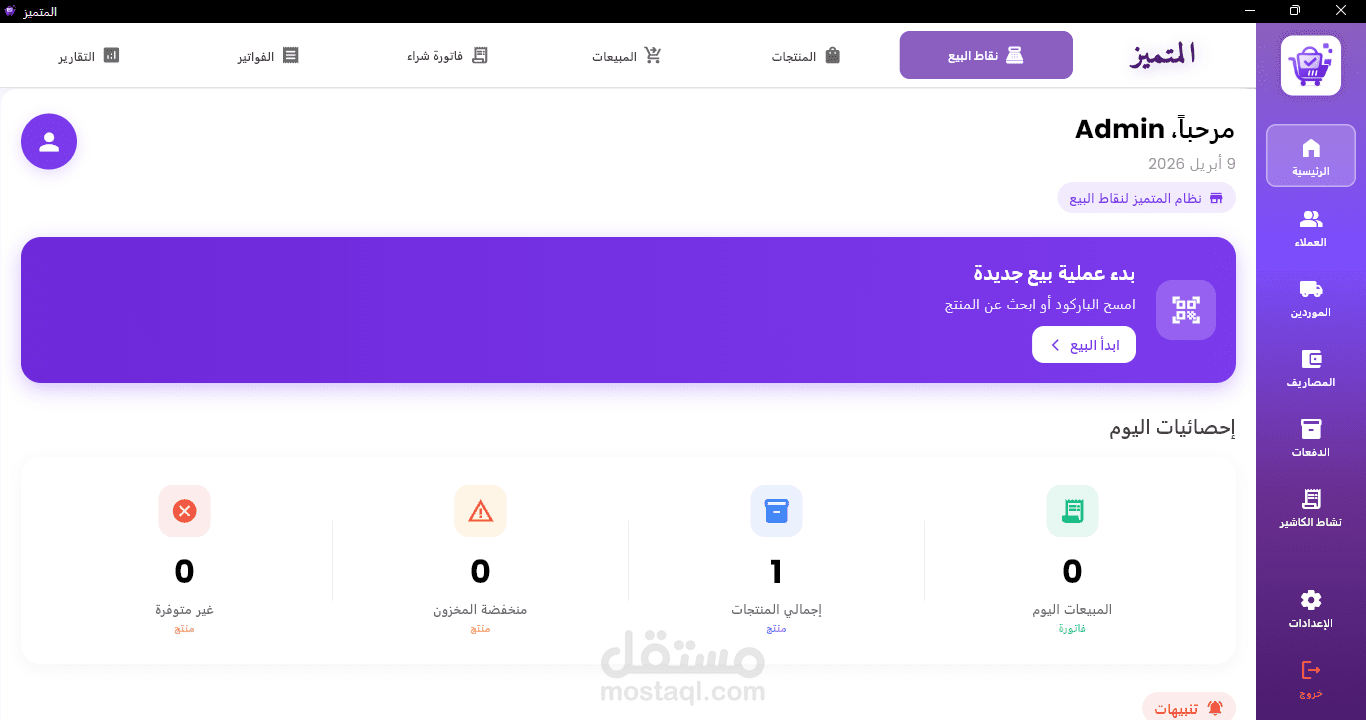 توفير حل عملي وموثوق لأصحاب المتاجر لإدارة أعمالهم اليومية بكفاءة عالية، بدون الاعتماد على الإنترنت، مع تحسين سرعة العمليات وتقليل الأخطاء البشرية.