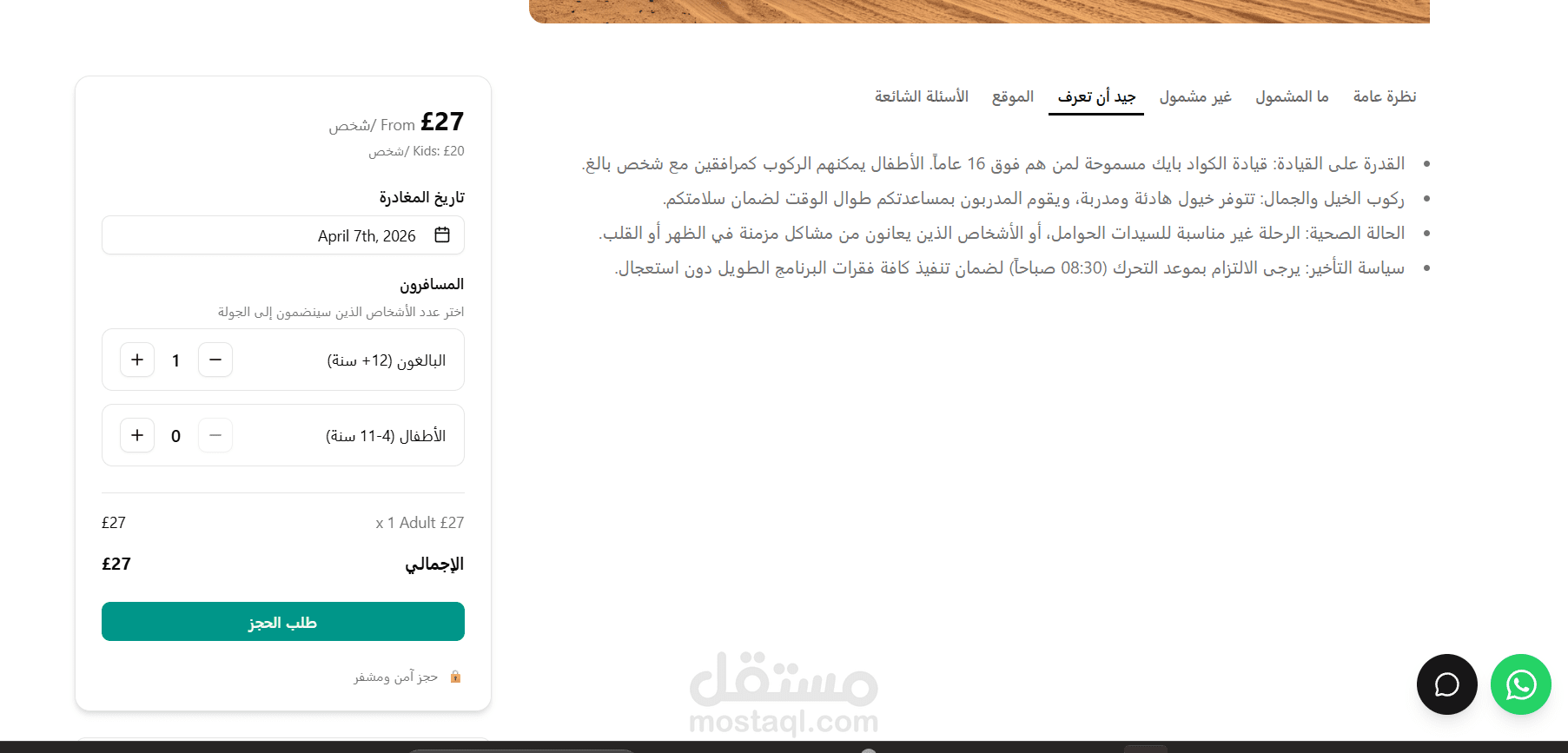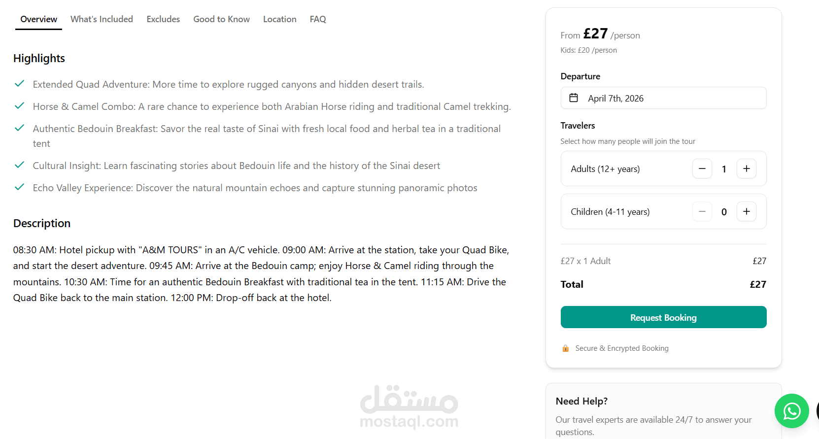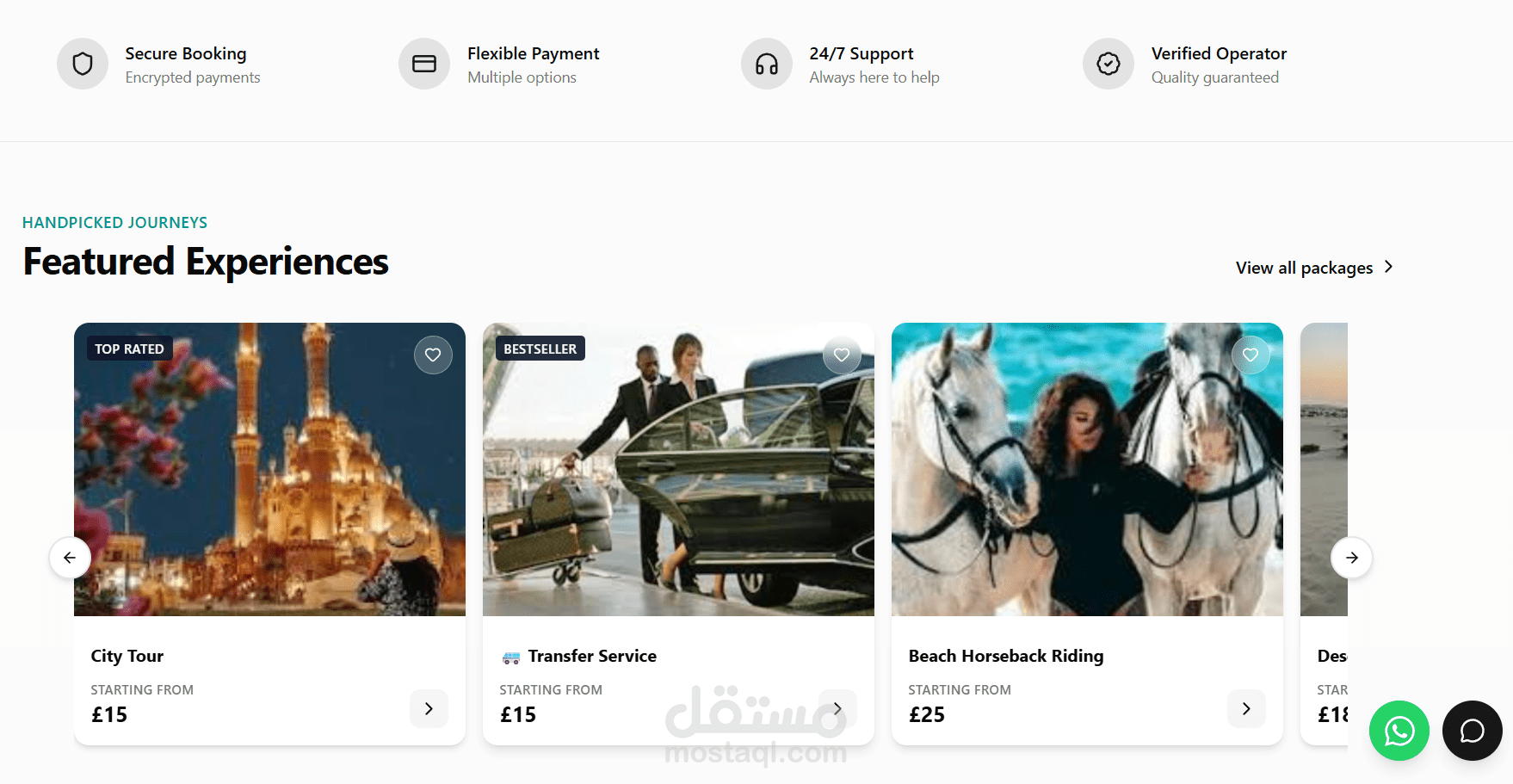 ? مساعد ذكي (AI Chatbot): دمج نظام دردشة ذكي (مبني على OpenAI SDK) يعمل كمستشار سياحي رقمي؛ يقوم بتحليل رغبات الزوار واقتراح الرحلات والخدمات المناسبة لهم مباشرة من قاعدة بيانات الموقع، مما يزيد من معدل التحويل (Conversion Rate).