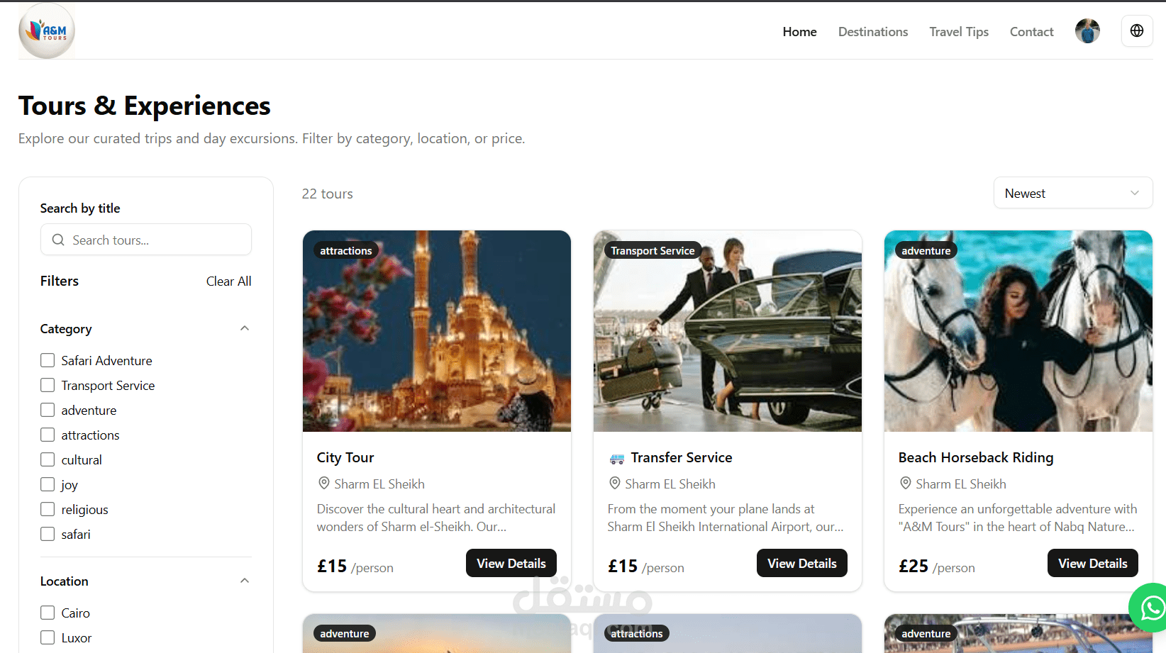 يعتبر مشروع A&M Tours نموذجاً متطوراً لمنصات الحجز السياحي الحديثة، حيث يجمع بين واجهات المستخدم الأنيقة وأحدث تقنيات الذكاء الاصطناعي لتوفير تجربة مستخدم لا تُنسى. تم بناء المنصة لتكون محركاً تسويقياً متكاملاً يدعم التوسع العالمي بـ 4 لغات (العربية، الإنجليزية، الإيطالية، الروسية).