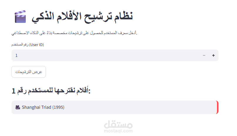 نظام يعتمد على خوارزمية التشابه الجيبي (Cosine Similarity) لتحليل سلوك المستخدمين وترشيح محتوى يتناسب مع أذواقهم، مع واجهة تفاعلية باستخدام Streamlit.
