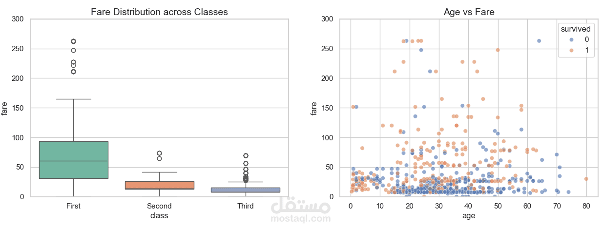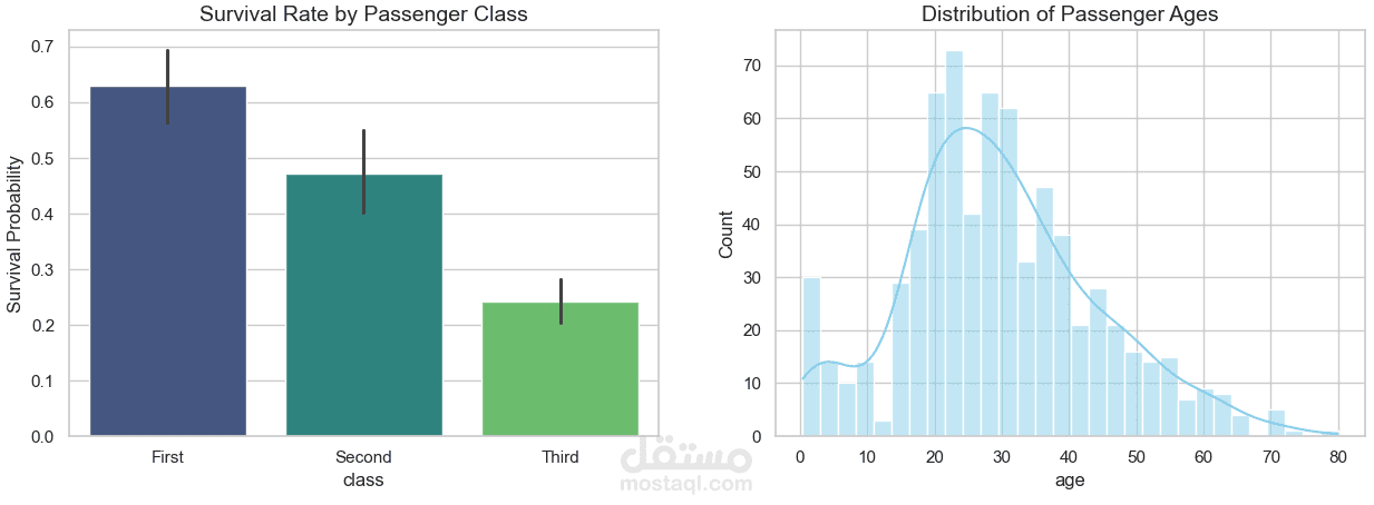 "قمت بتحليل شامل لبيانات ركاب تيتانيك لاستكشاف العوامل المؤثرة على النجاة، مع تقديم رسوم بيانية تفاعلية تساعد في فهم سلوك البيانات وتوزيعاتها الإحصائية."