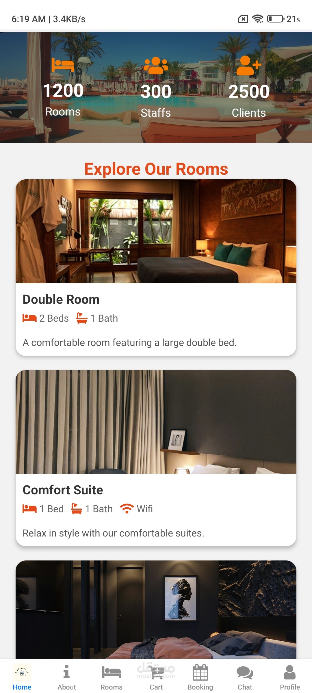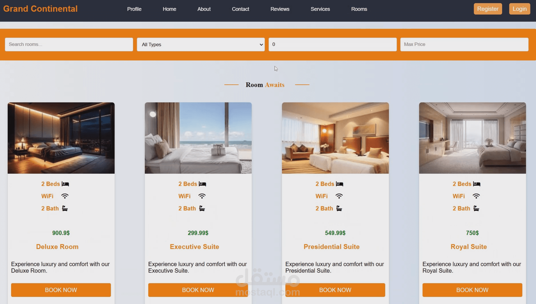 إدارة الغرف: نظام لتصنيف الغرف (Single, Double, Suite) وتتبع حالتها (متاحة/محجوزة).