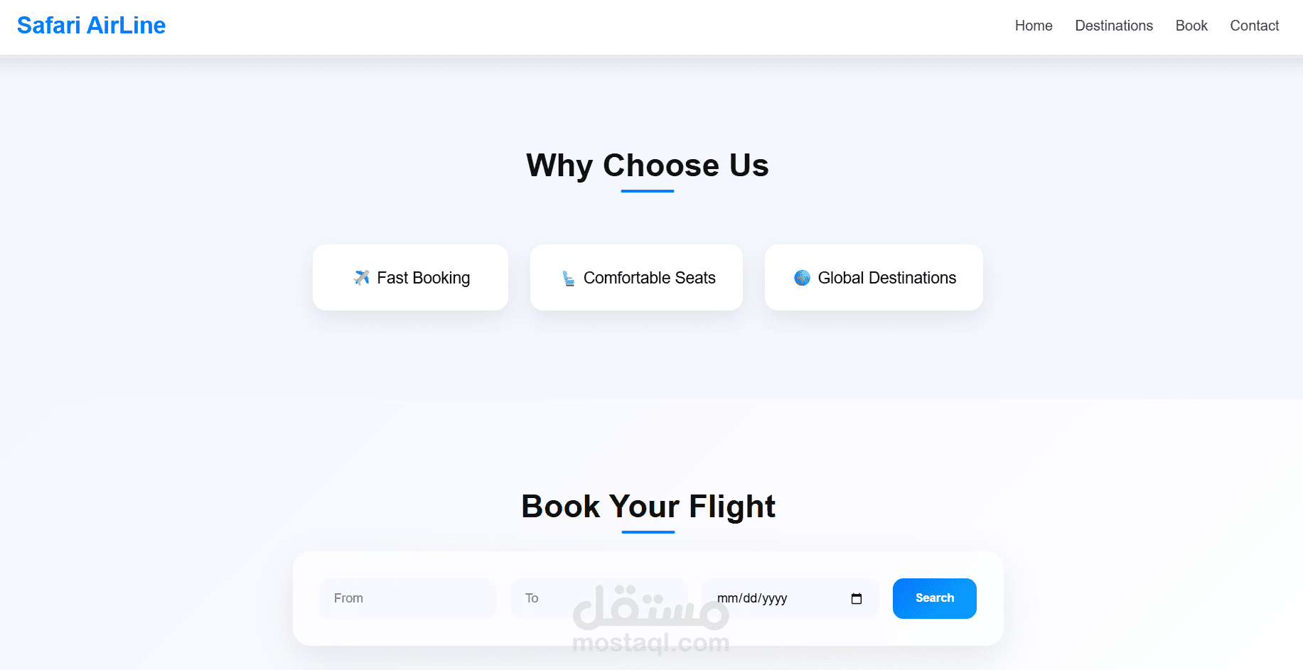 تصميم حديث (Modern UI) مناسب لشركات الطيران والسفر