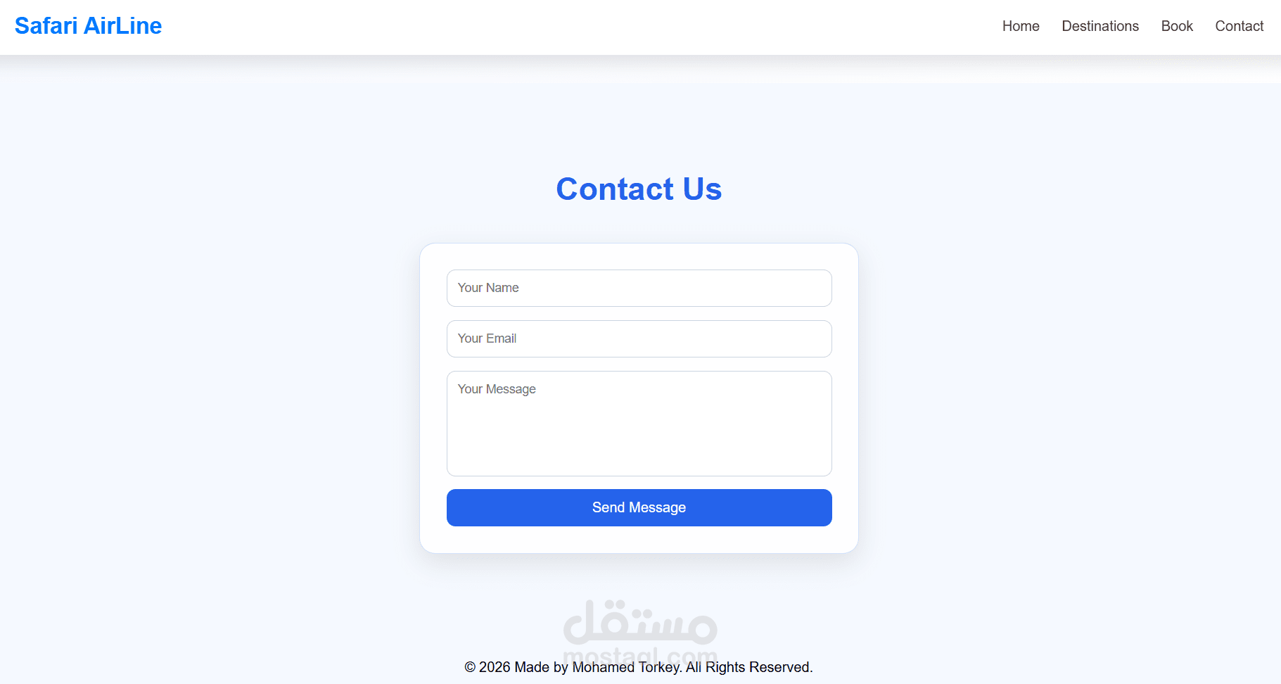 مت بتصميم وتطوير (Landing Page) عصرية لشركة طيران، تهدف إلى تقديم تجربة مستخدم مميزة وسلسة مع تصميم جذاب واحترافي.