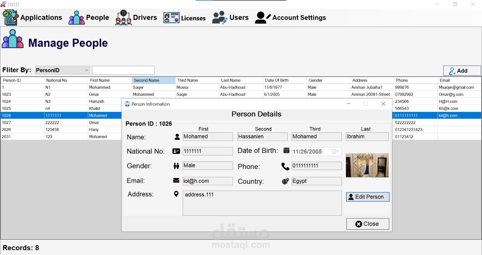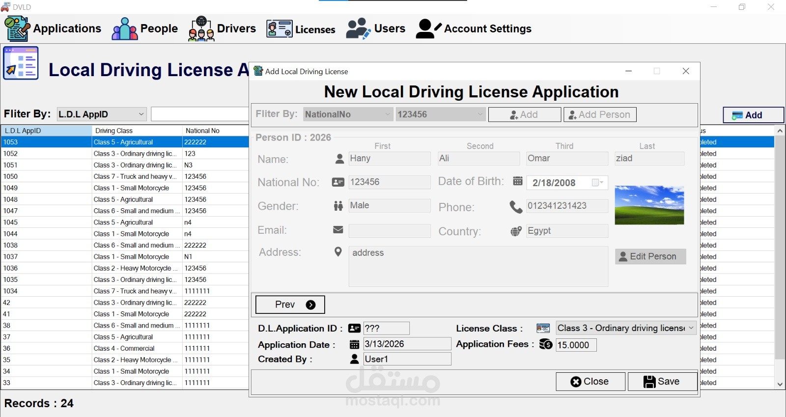 نظام DVLD (إدارة رخص القيادة والمركبات) هو تطبيق مكتبي متكامل تم تطويره باستخدام C# و SQL Server (ADO.NET) لإدارة رخص القيادة، تسجيل المركبات، والمخالفات المرورية. يعتمد النظام على الهيكلية ثلاثية الطبقات (3-Tier Architecture) التي تشمل طبقة الوصول إلى البيانات (Data Access Layer) وطبقة منطق الأعمال (Business Layer) وطبقة العرض (Presentation Layer)، وذلك لضمان قابلية التوسع وسهولة الصيانة.