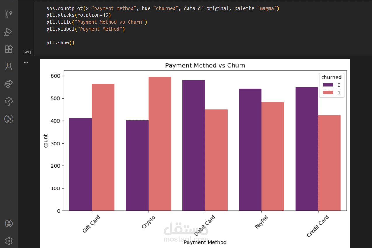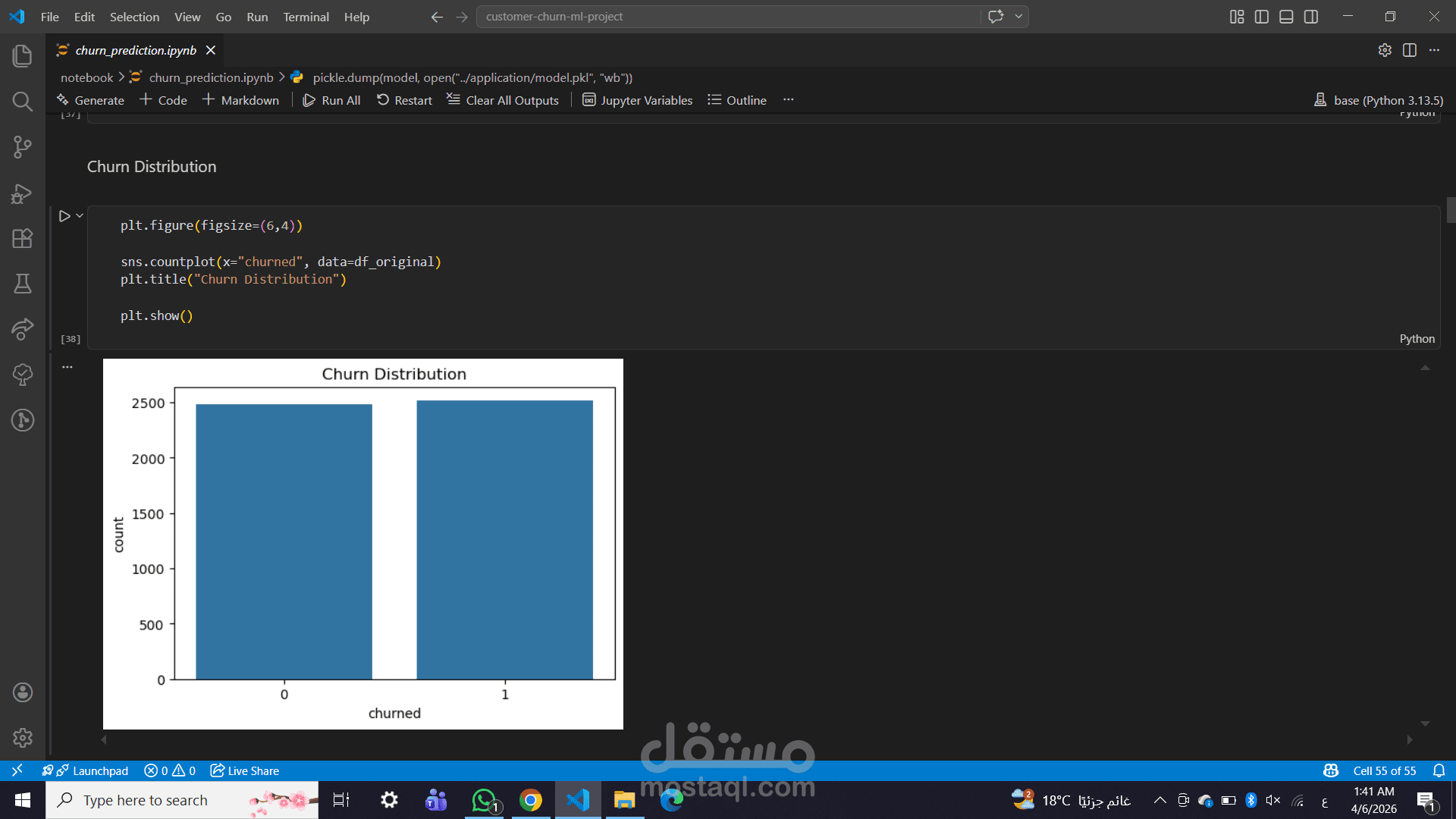 تنفيذ خطوات معالجة البيانات المسبقة (Preprocessing)، تحليل البيانات الاستكشافي (EDA)، وبناء عدة نماذج تعلم آلي (Logistic Regression، Decision Tree، Random Forest، KNN، Naive Bayes، XGBoost).