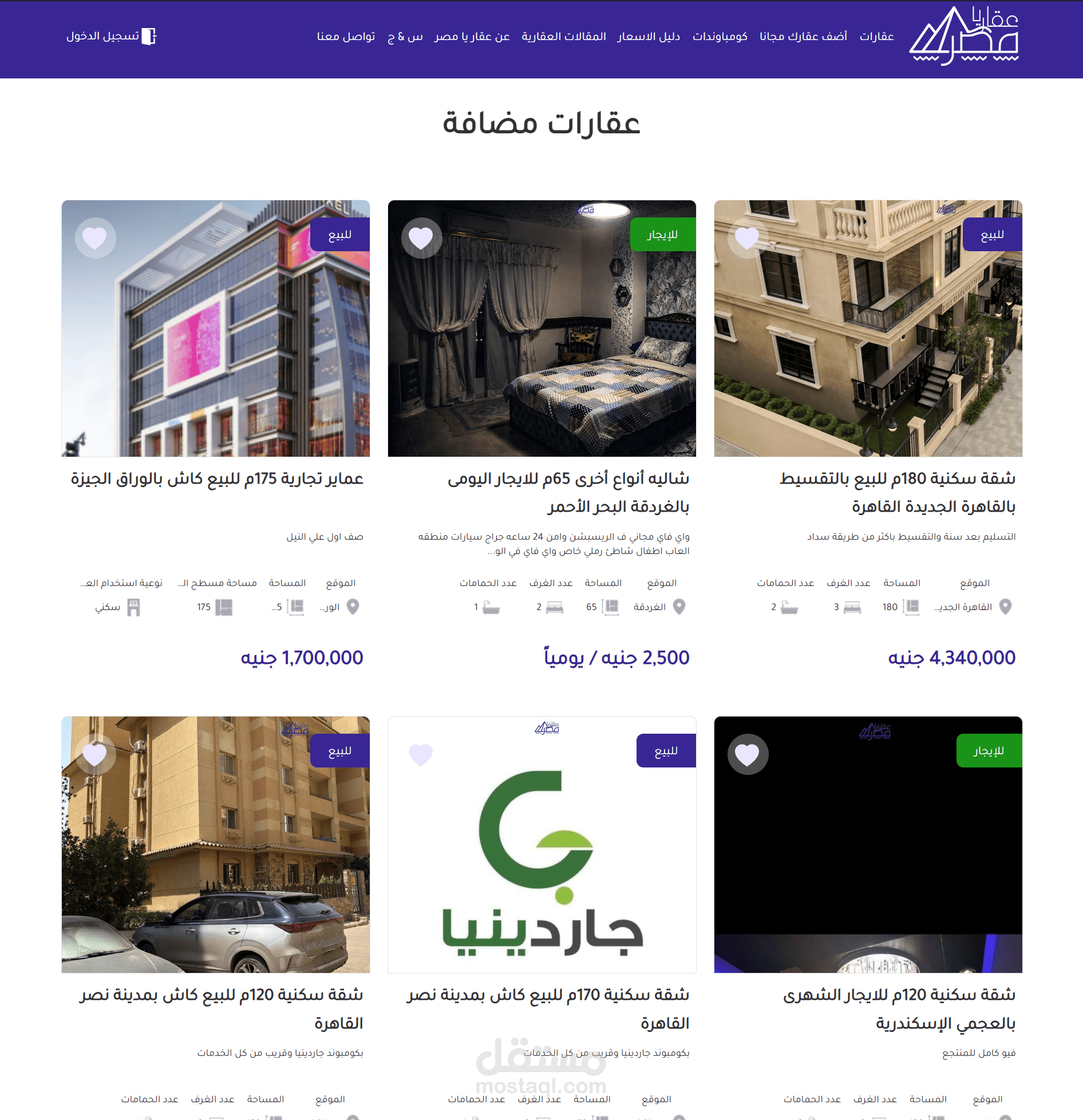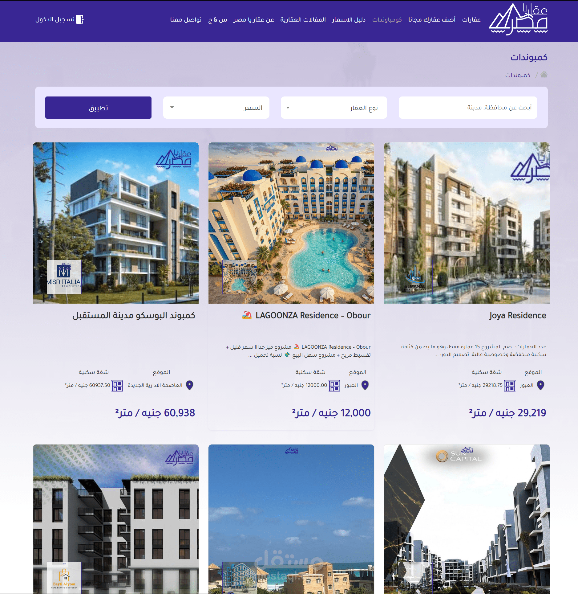 منصة Aqar Ya Masr عبارة عن نظام عقاري متكامل تم تطويره بأسلوب Full-Stack Architecture يهدف لتنظيم عملية عرض وبحث العقارات داخل السوق المصري بشكل structured وقابل للتوسع.